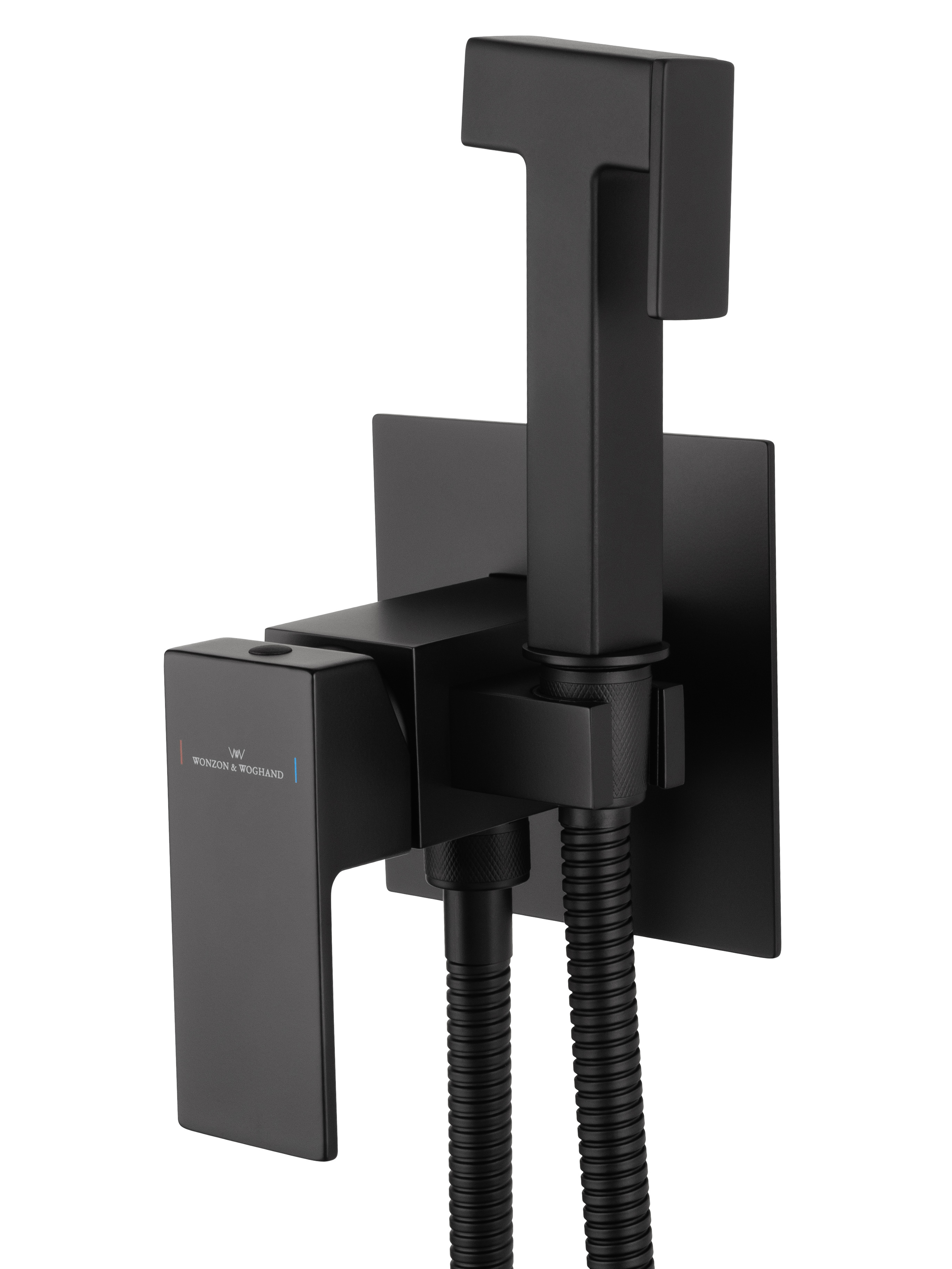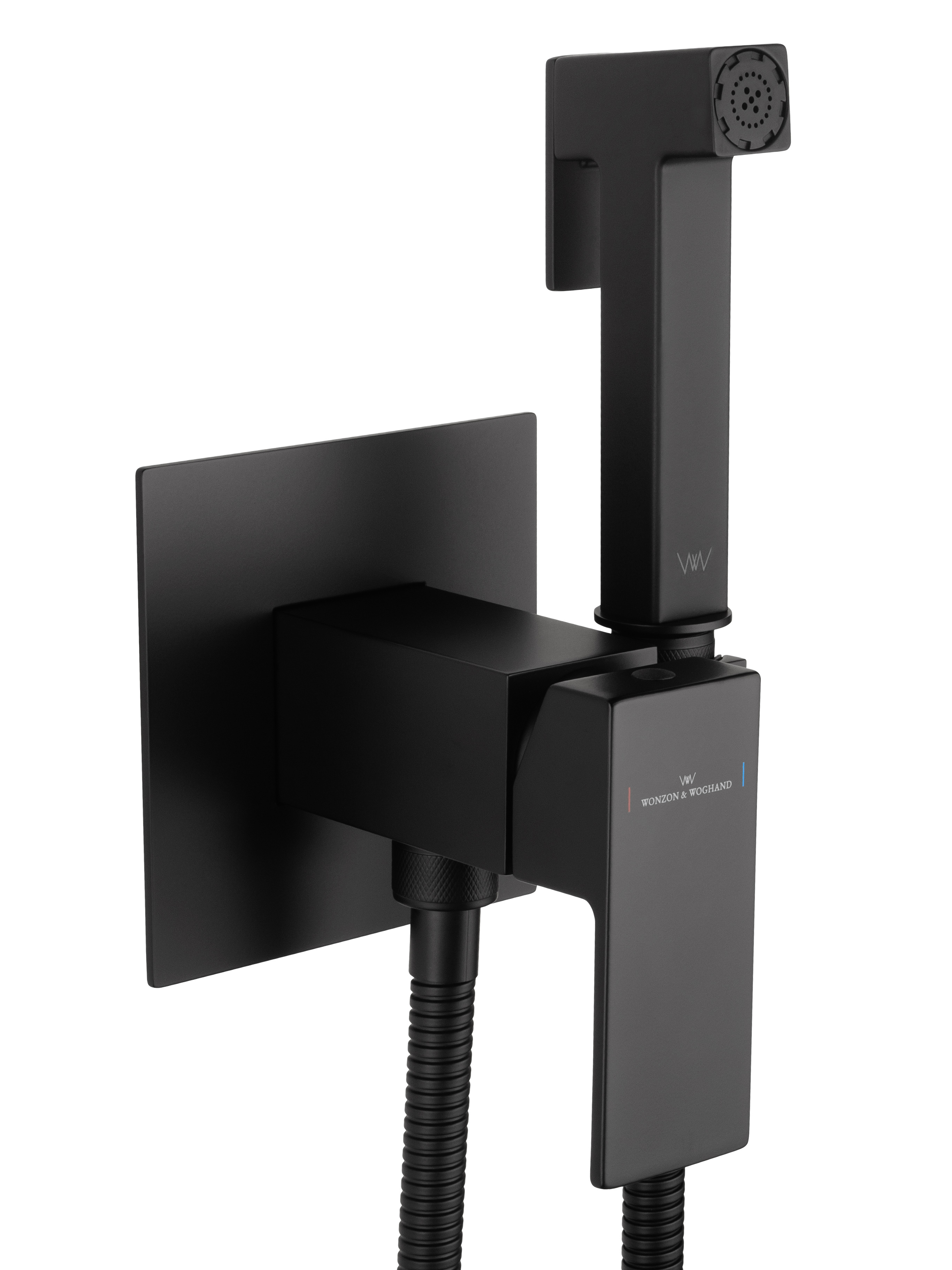 Смеситель с гигиеническим душем встраиваемый WONZON & WOGHAND CUBE, Черный матовый (WW-88829016-MB)