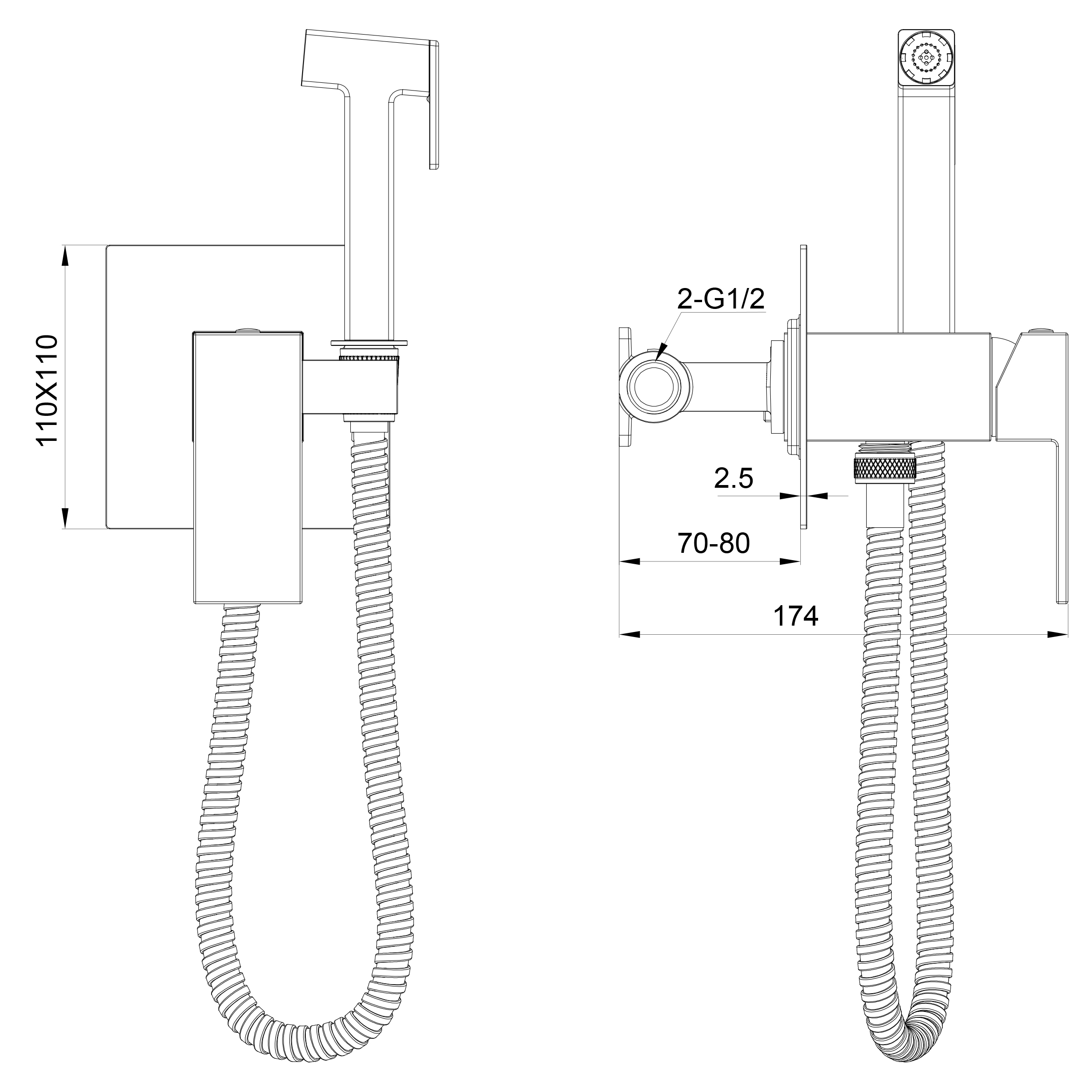 Смеситель с гигиеническим душем встраиваемый WONZON & WOGHAND CUBE, Хром (WW-88829016-CR)