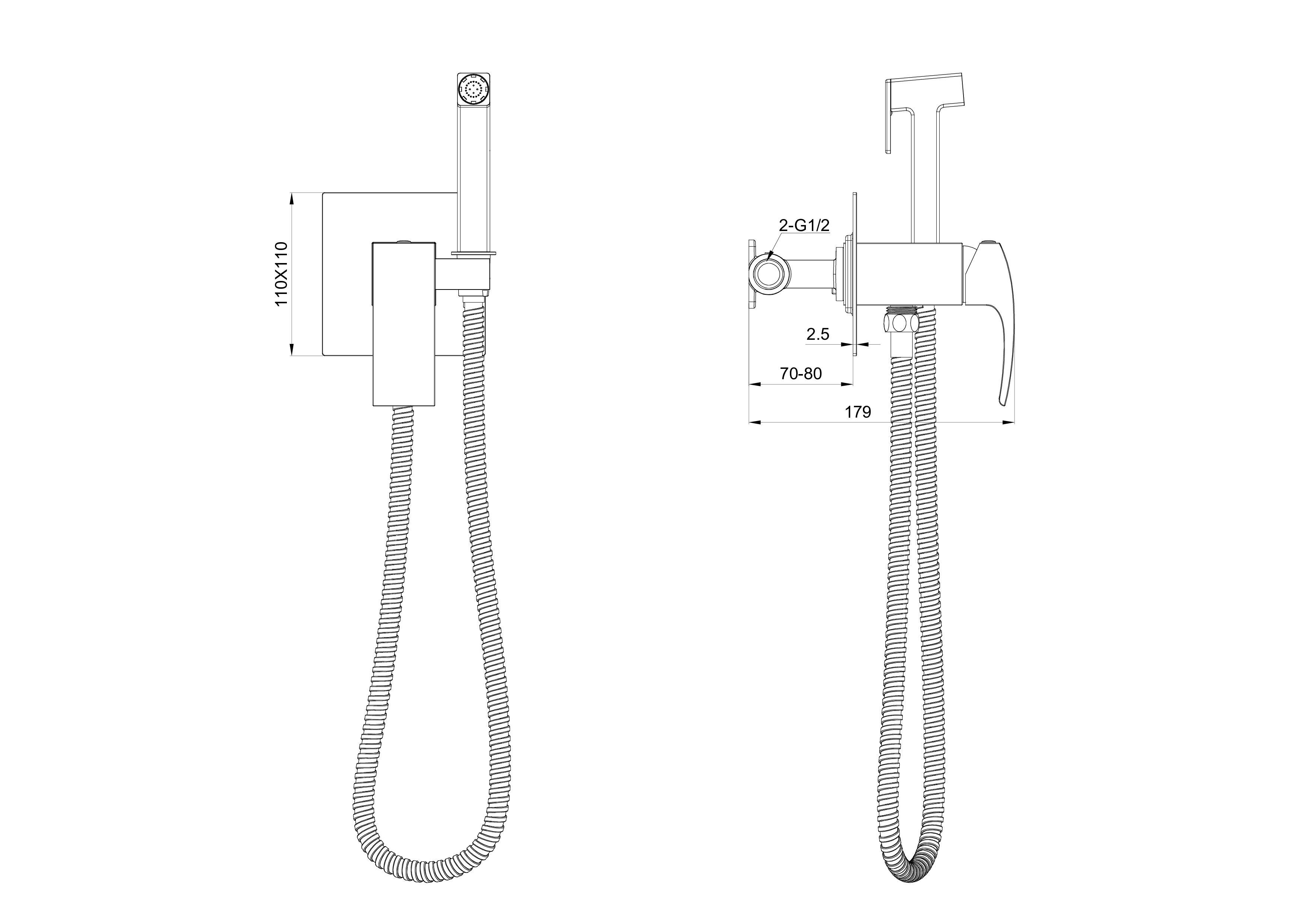 Смеситель с гигиеническим душем встраиваемый WONZON & WOGHAND FIT, Темный графит (WW-88829009-BGM)