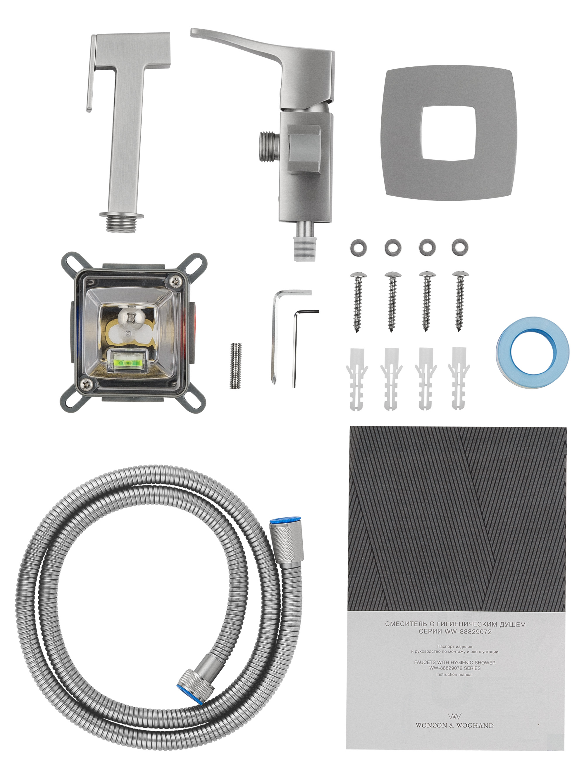 Смеситель с гигиеническим душем встраиваемый WONZON & WOGHAND FLEX, Брашированный никель (WW-88829072-BN)