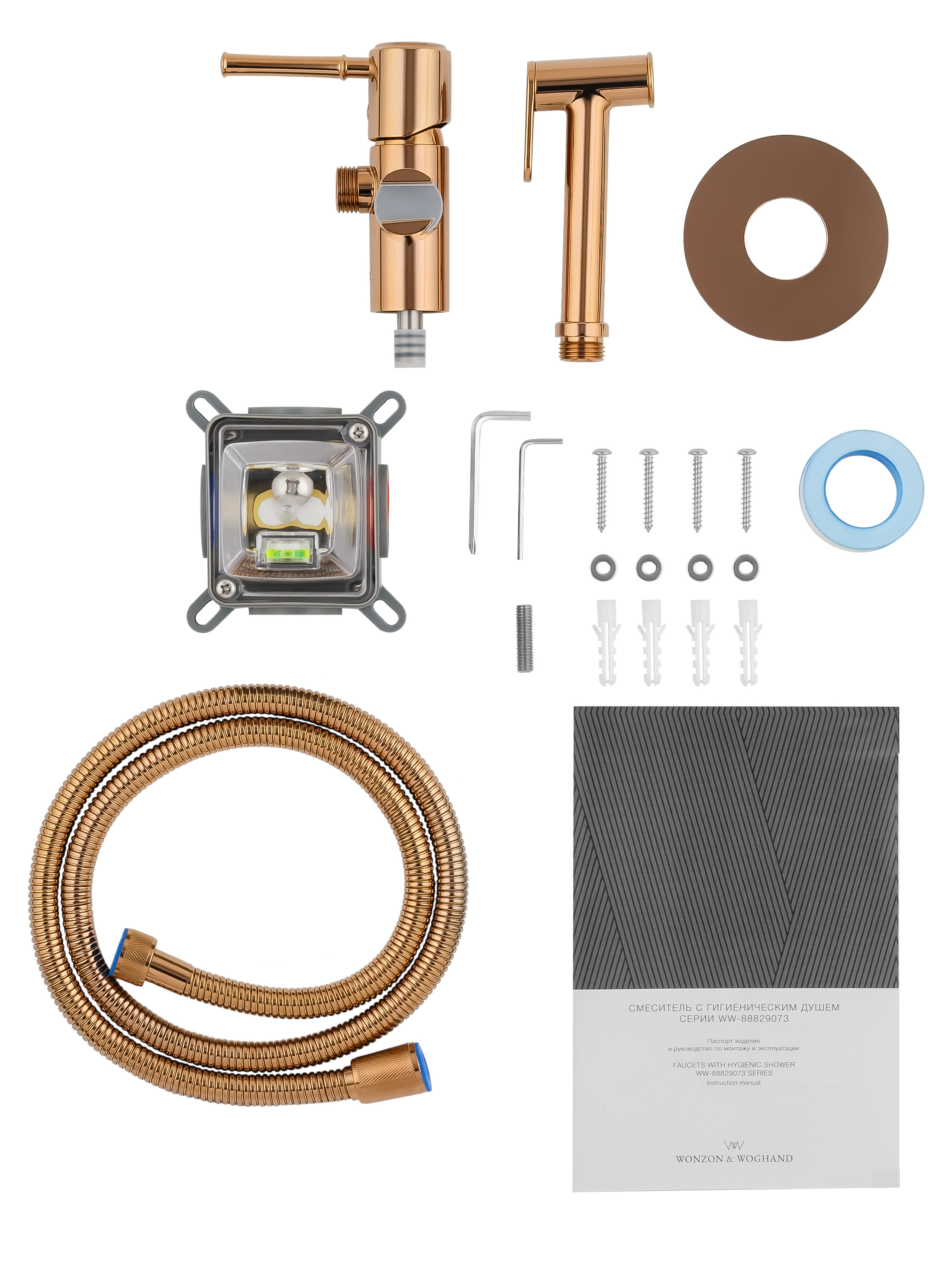Смеситель с гигиеническим душем встраиваемый WONZON & WOGHAND TOR, Розовое золото (WW-88829073-RG)