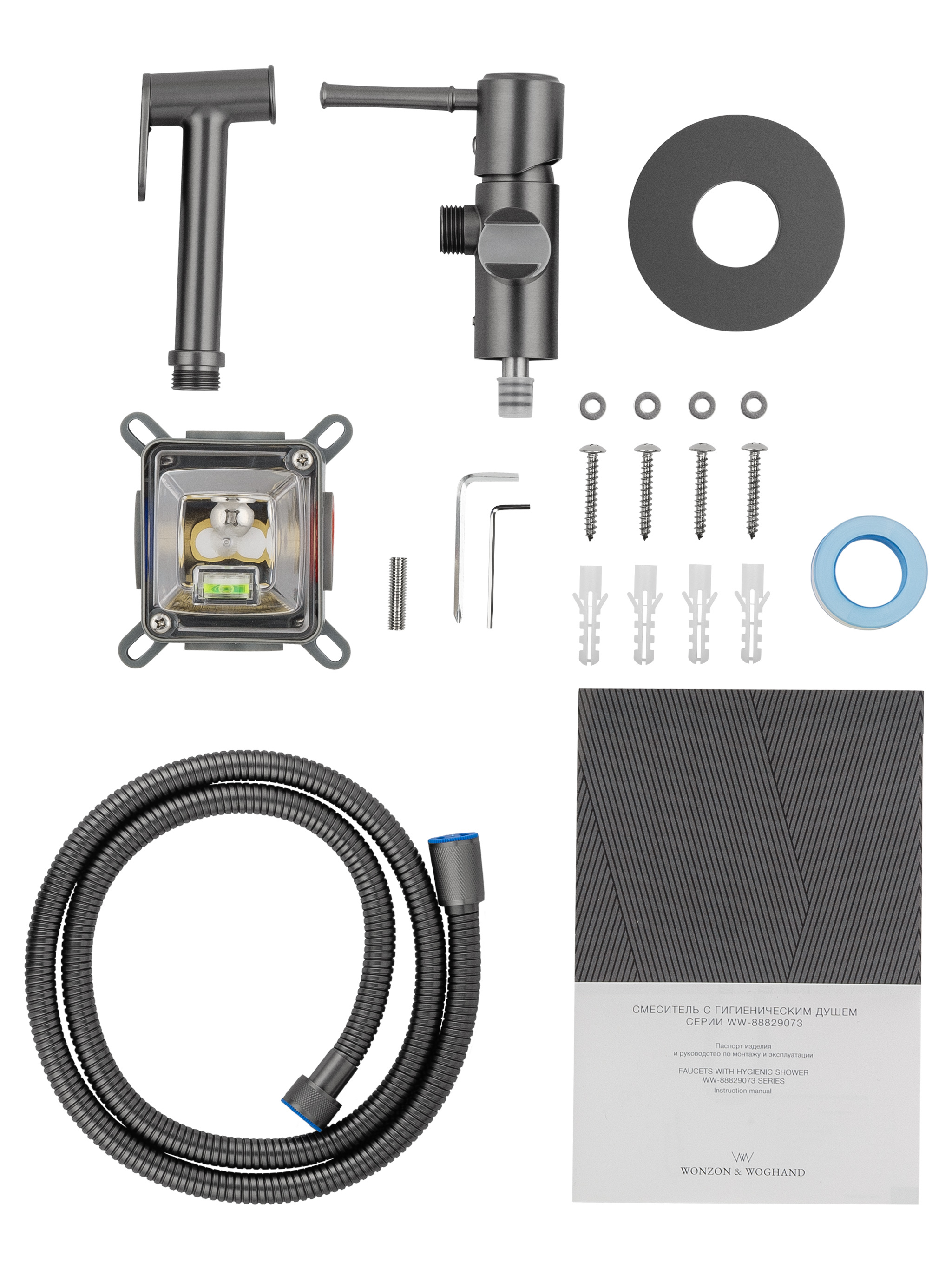 Смеситель с гигиеническим душем встраиваемый WONZON & WOGHAND TOR, Темный графит (WW-88829073-BGM)