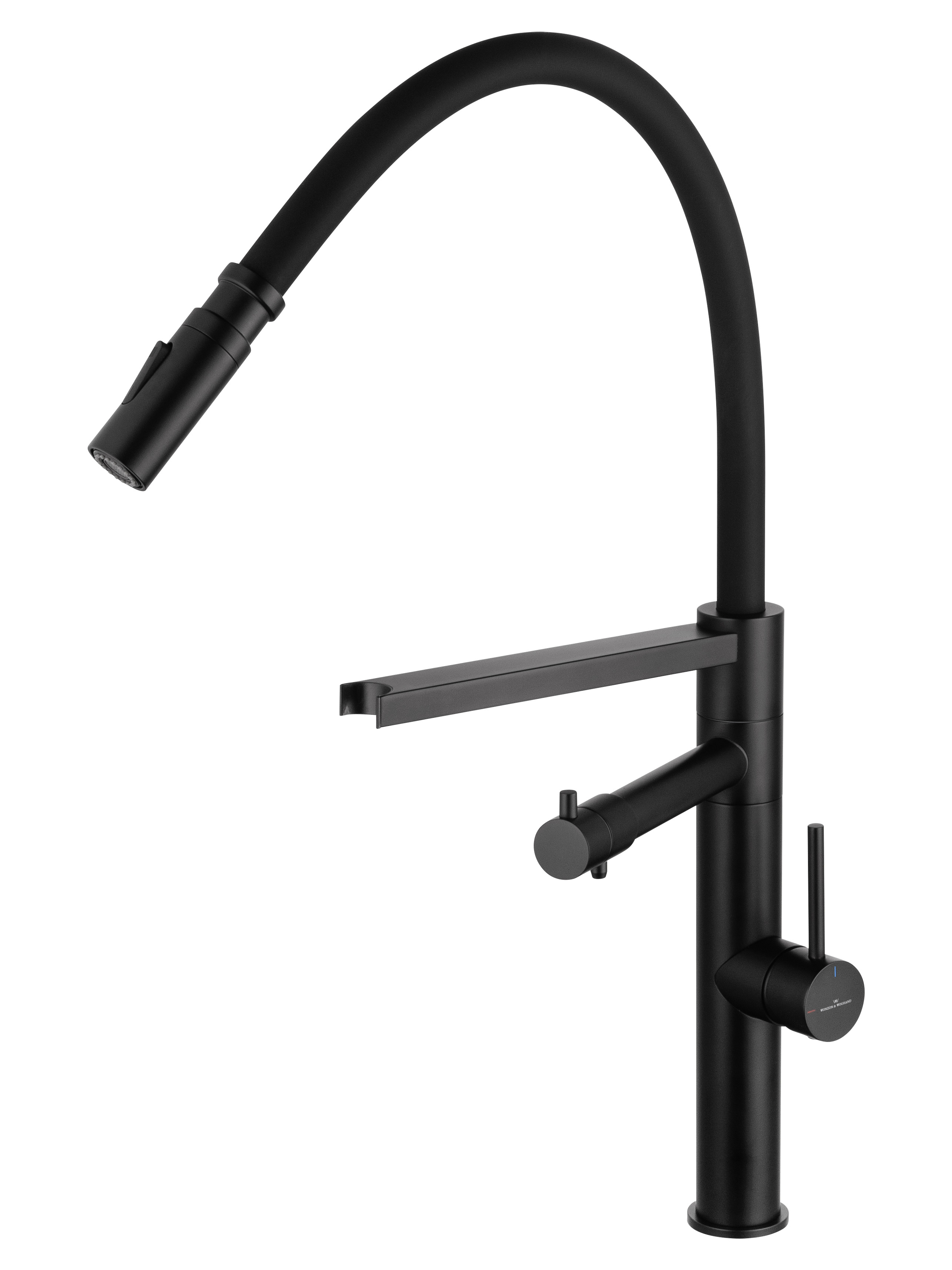 Смеситель для кухни с гибким изливом и подключением фильтра WONZON & WOGHAND, Черный матовый (WW-88458007-MB)