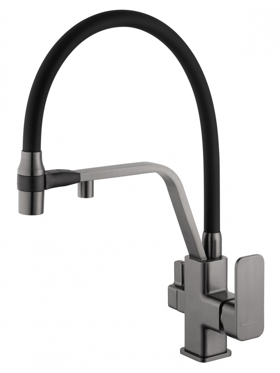 Смеситель для кухни с гибким изливом и подключением фильтра WONZON & WOGHAND, Темный графит (WW-88458013-BGM)