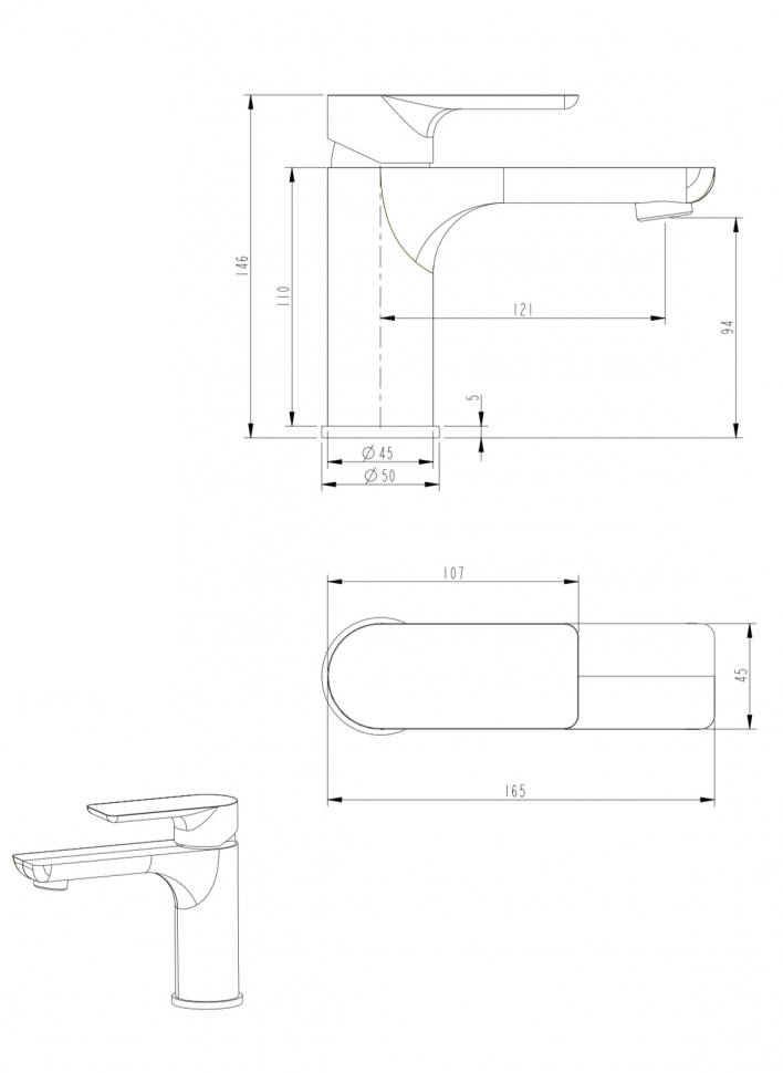Высота смесителя- 15 см.