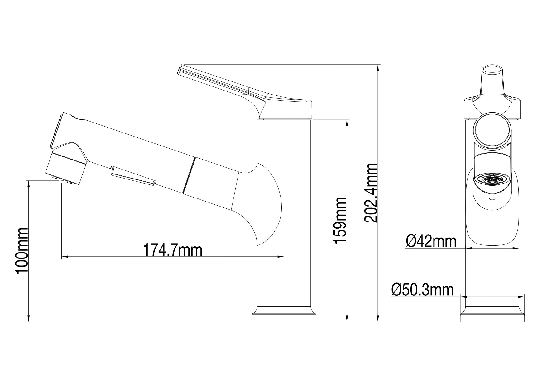 Смеситель для раковины с выдвижным изливом WONZON & WOGHAND, Темный графит (WW-A40862-BGG)