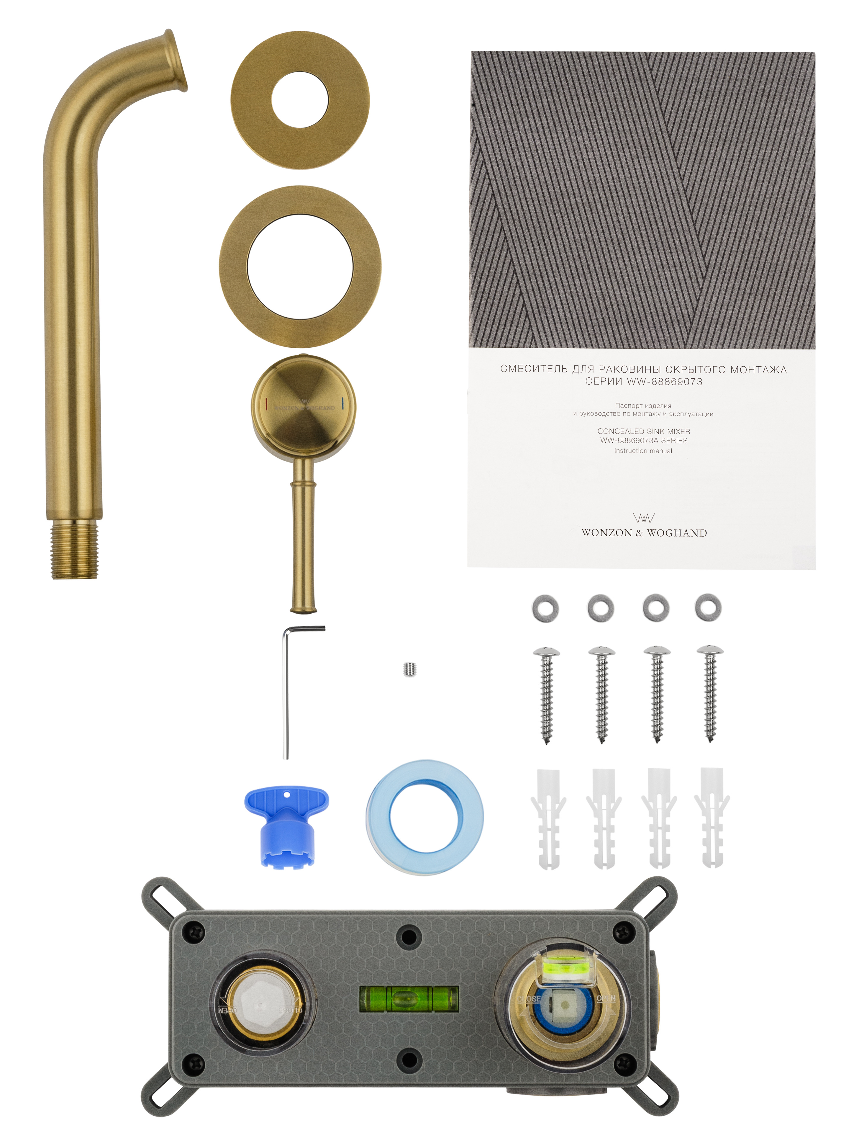 Смеситель для раковины встраиваемый WONZON & WOGHAND TOR, Брашированное золото (WW-88869073-BG)
