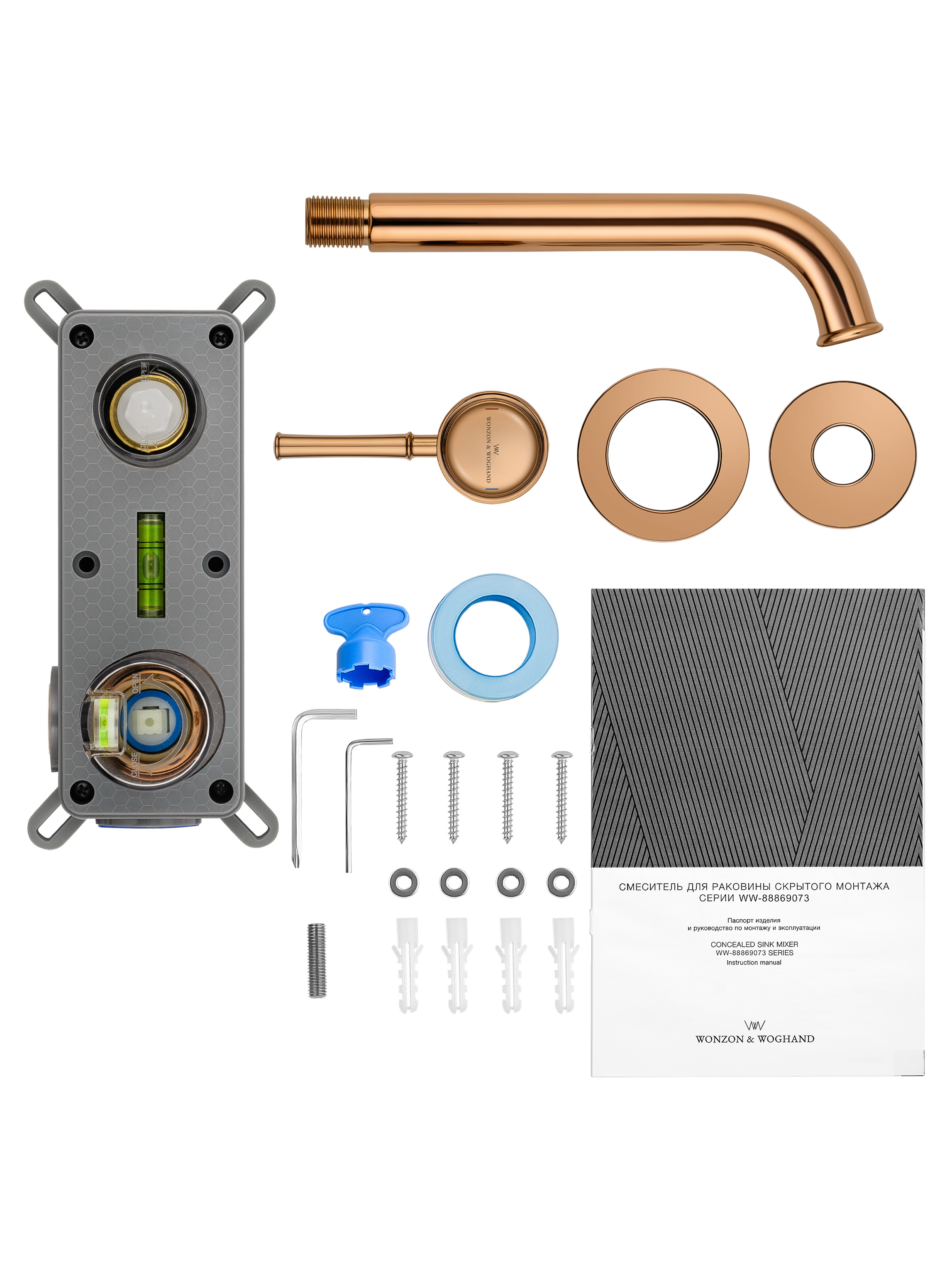 Смеситель для раковины встраиваемый WONZON & WOGHAND TOR, Розовое золото (WW-88869073-RG)