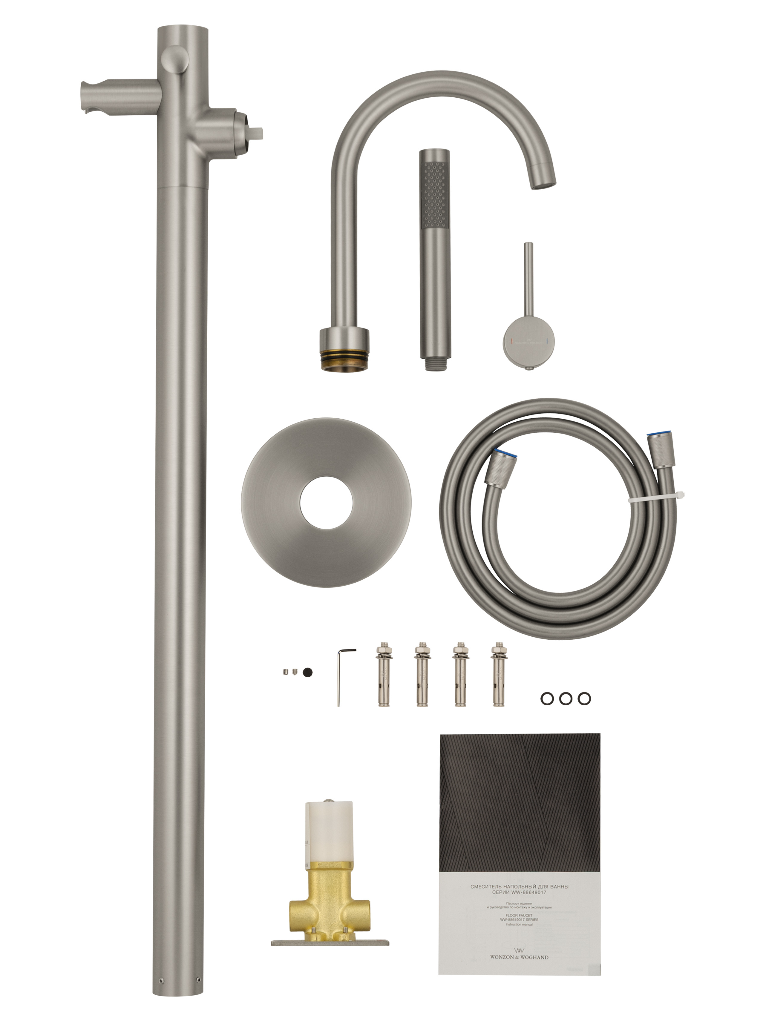 Смеситель для ванны напольного монтажа WONZON & WOGHAND STICK, Брашированный никель (WW-88649017-BN)