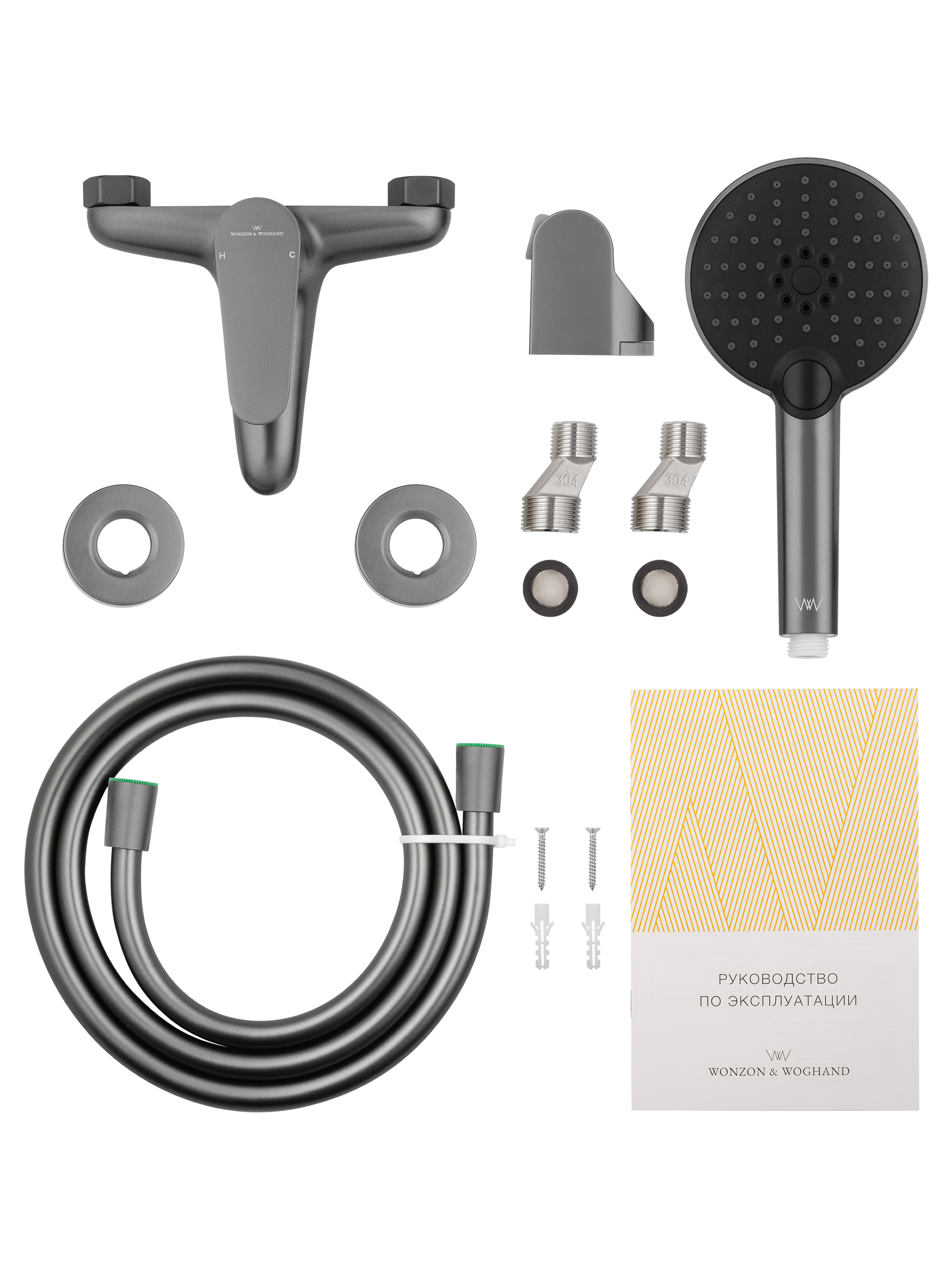 Смеситель для ванны с душем WONZON & WOGHAND ALFA, Темный графит (WW-AE3204-BGG)