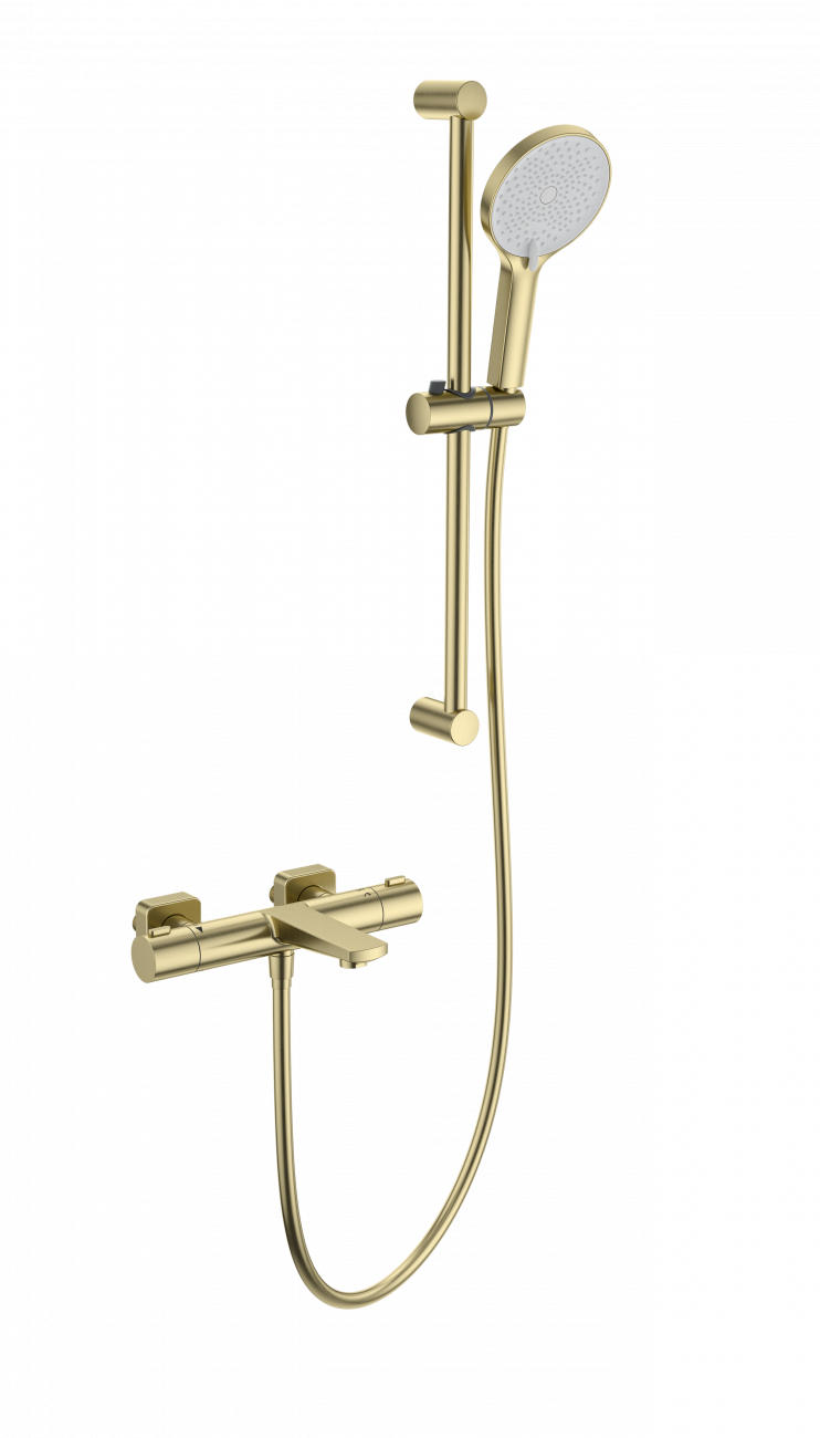 Смеситель для ванны с душевым гарнитуром и термостатом WONZON & WOGHAND, Брашированное золото (WW-C2021-A-BG)