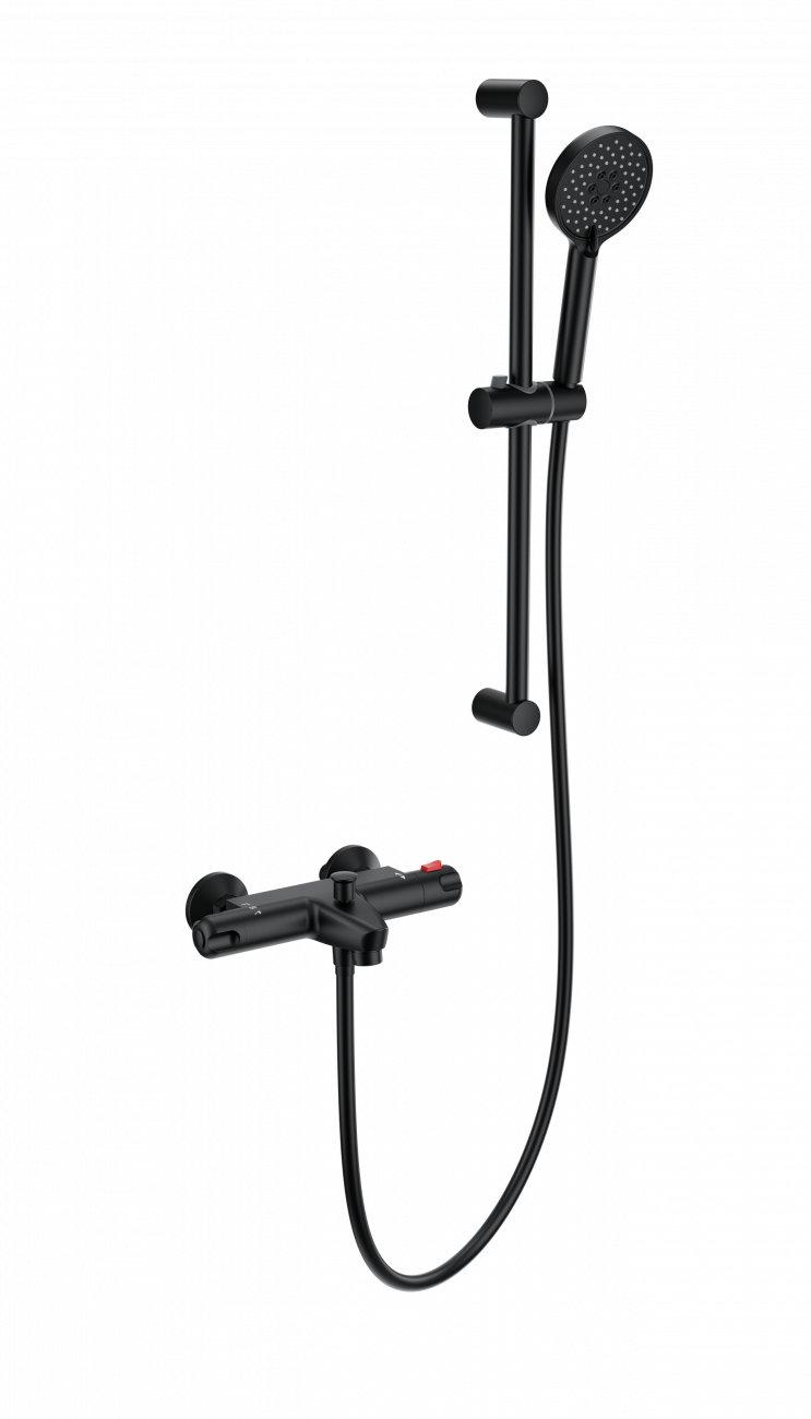 Смеситель для ванны с душевым гарнитуром и термостатом WONZON & WOGHAND, Черный матовый (WW-C2001-A-MB)
