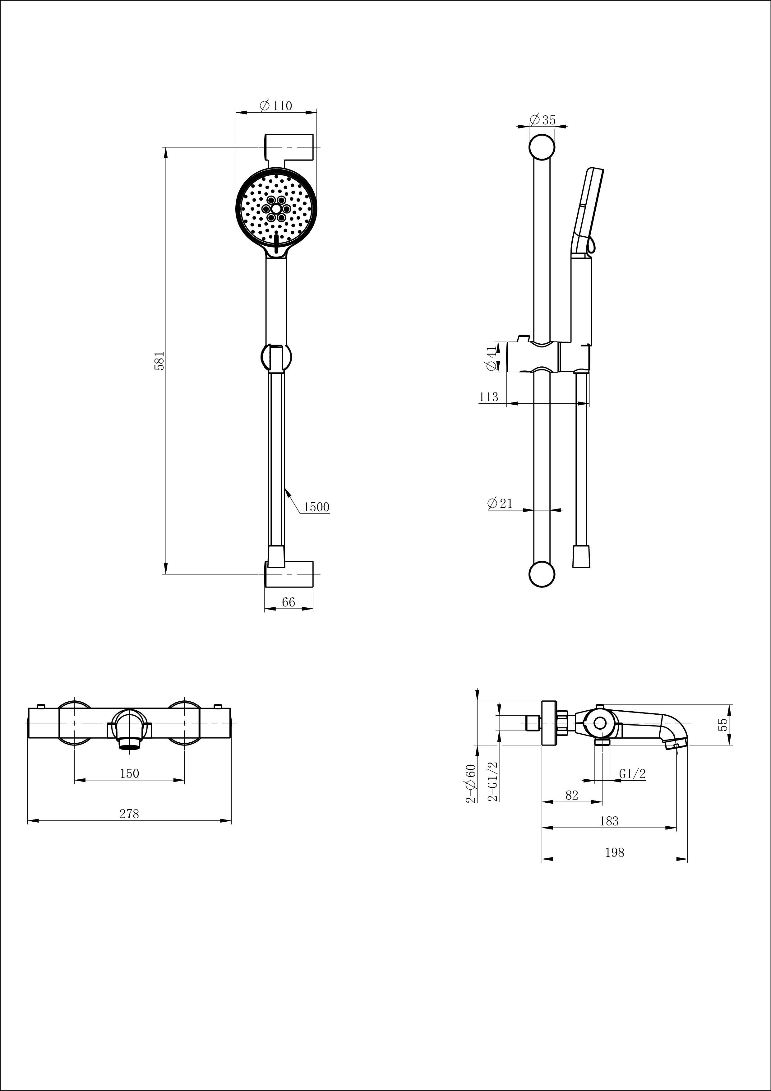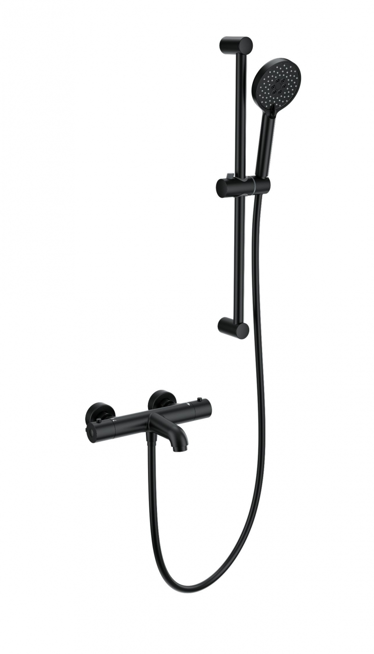 Смеситель для ванны с душевым гарнитуром и термостатом WONZON & WOGHAND, Черный матовый (WW-C2006-A-MB)