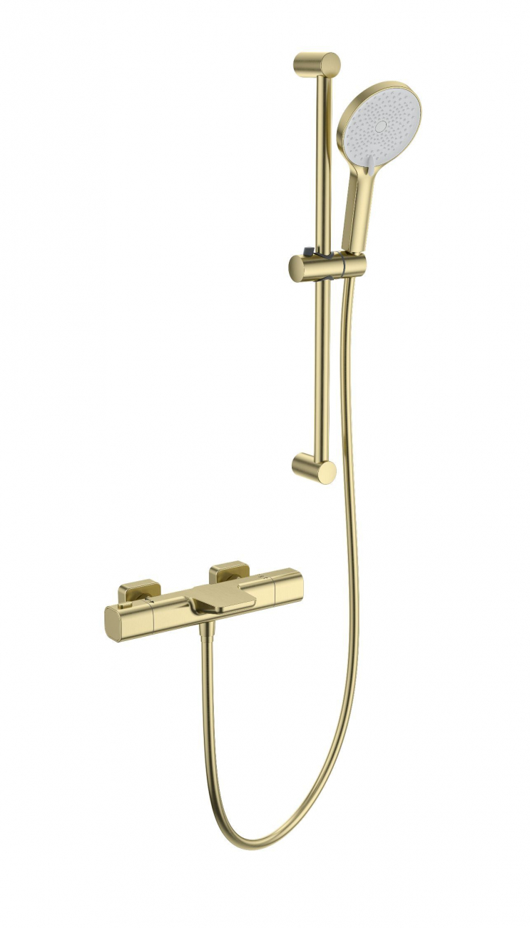 Смеситель для ванны с душевым гарнитуром и термостатом WONZON & WOGHAND Plate, Брашированное золото (WW-C2017-A-BG)