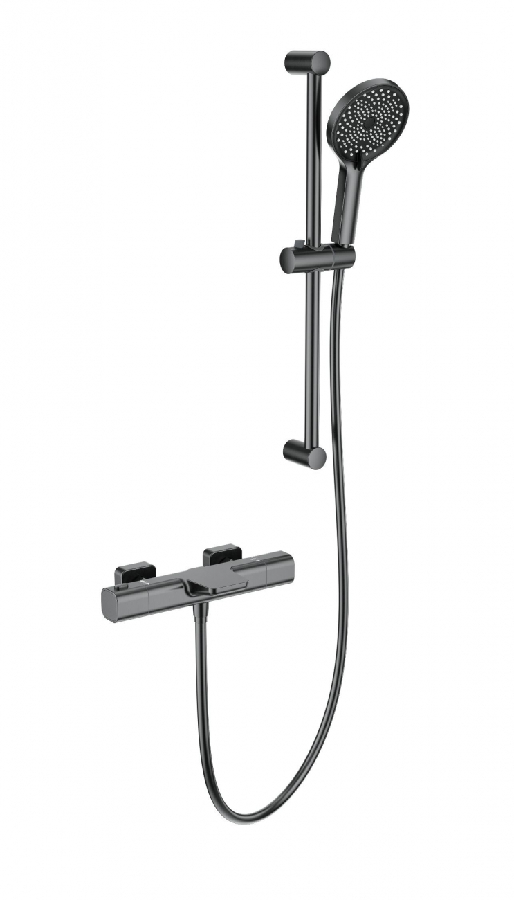 Смеситель для ванны с душевым гарнитуром и термостатом WONZON & WOGHAND Plate, Темный графит (WW-C2017-A-BGG)