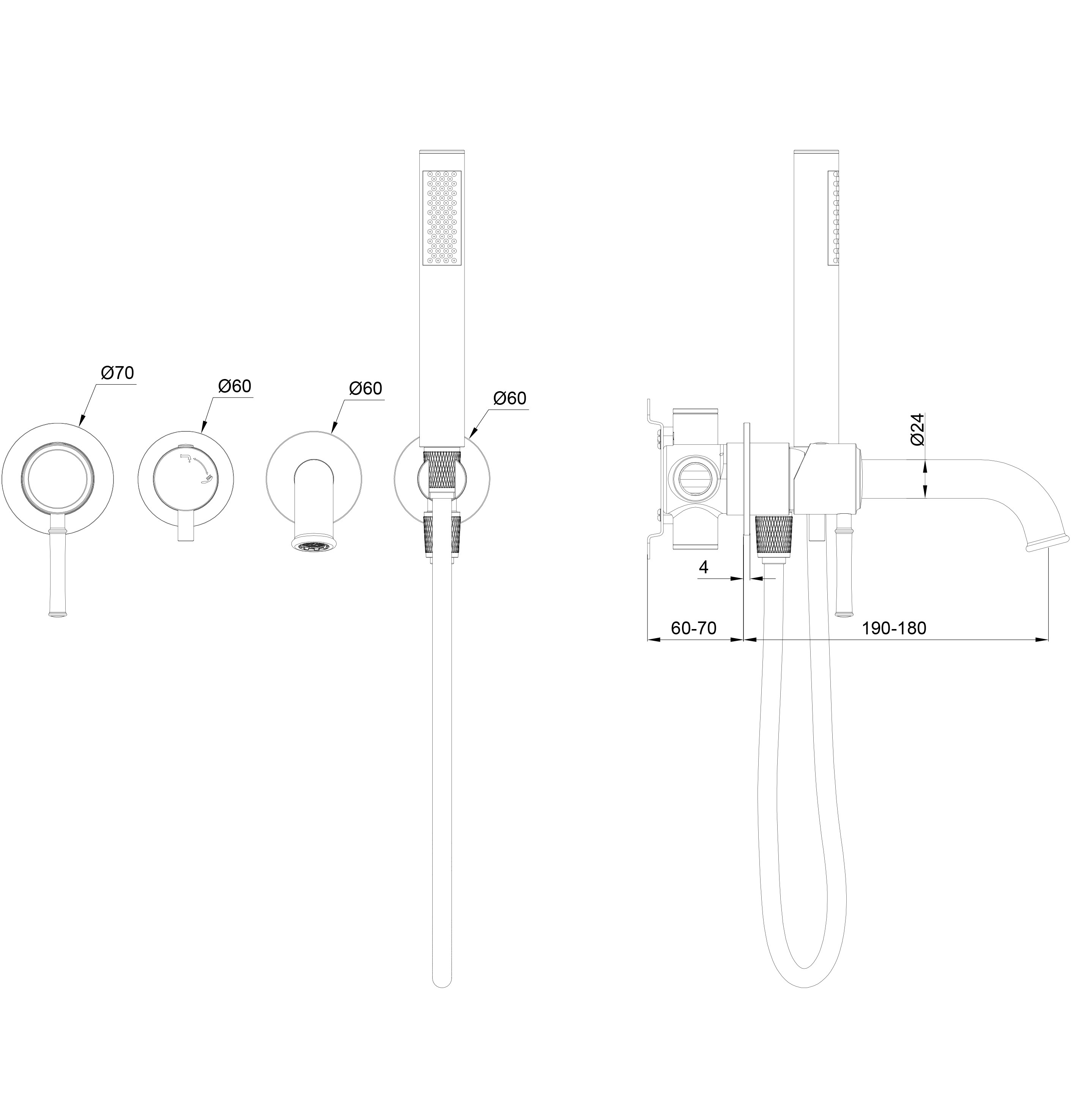 Смеситель для ванны встраиваемый WONZON & WOGHAND TOR, Розовое золото (WW-88889073-RG)