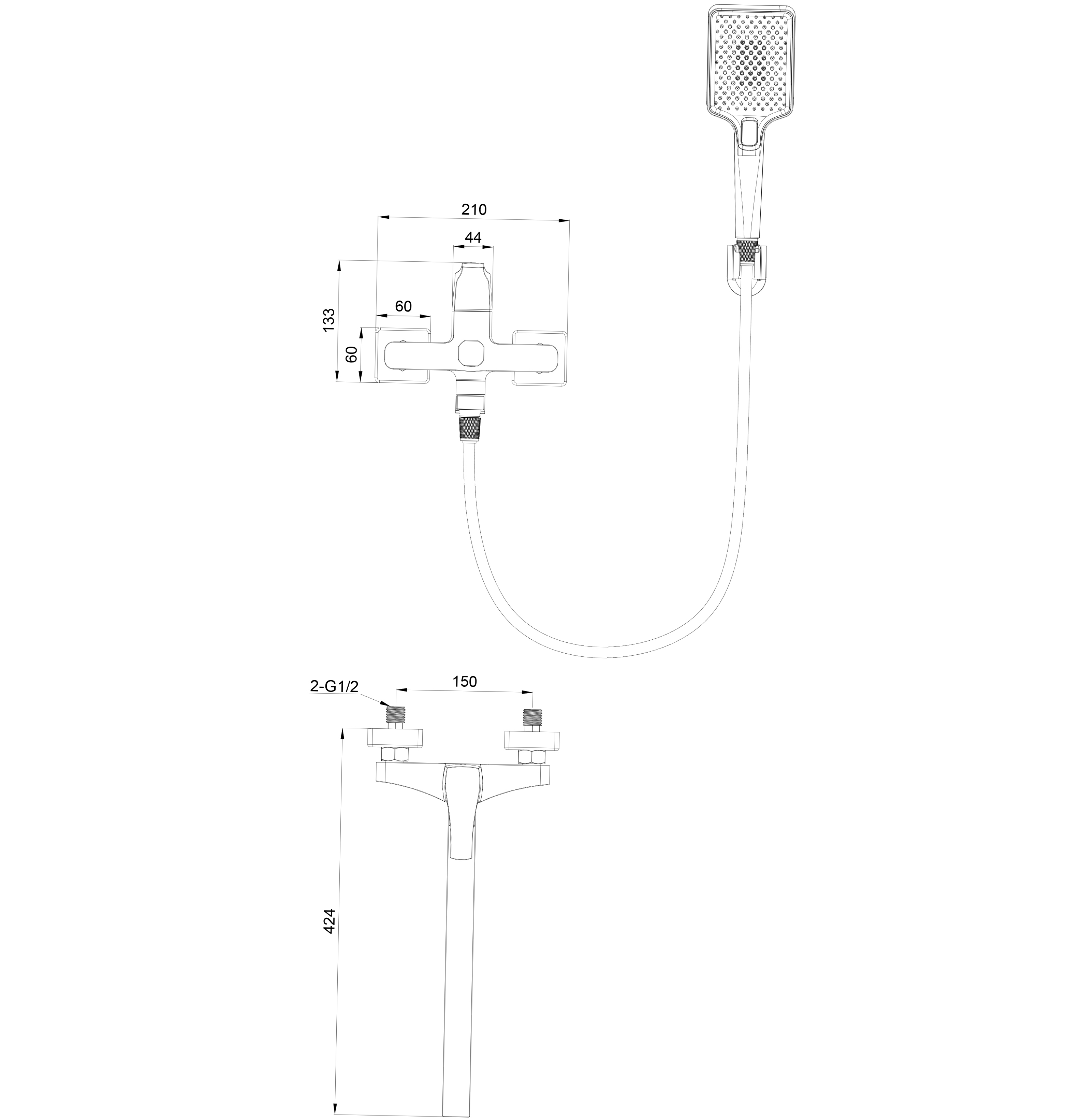 Смеситель для ванны WONZON & WOGHAND FLEX, Темный графит (WW-639906-BGM)