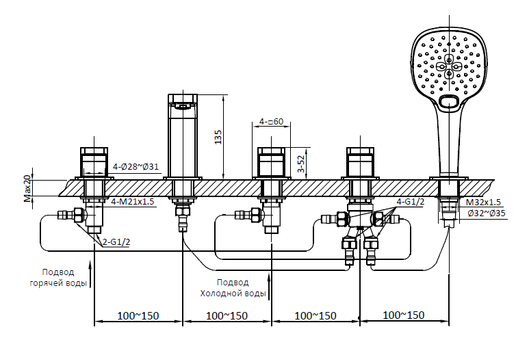 Смеситель на борт ванной с душем AltroBagno Lamberto 020106 MB