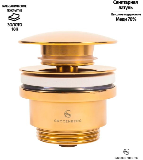 Донный клапан «Grocenberg» производятся из санитарной латуни с высоким содержанием меди (70%), при обработке и покрытии смесителей используются самые передовые технологии, двойное никель-хром гальваническое покрытие, порошковая окраска в камере высокого давления. Перед упаковкой и отправкой продукции, сантехника «Grocenberg» проходит контрольное тестирование на специальном оборудовании при наблюдении специалистов фабрики.