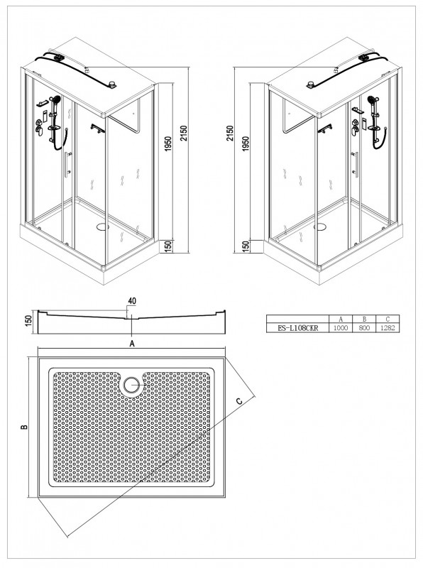 Кабина прямоугольная ESBANO ES-L108CKR с LED освещением