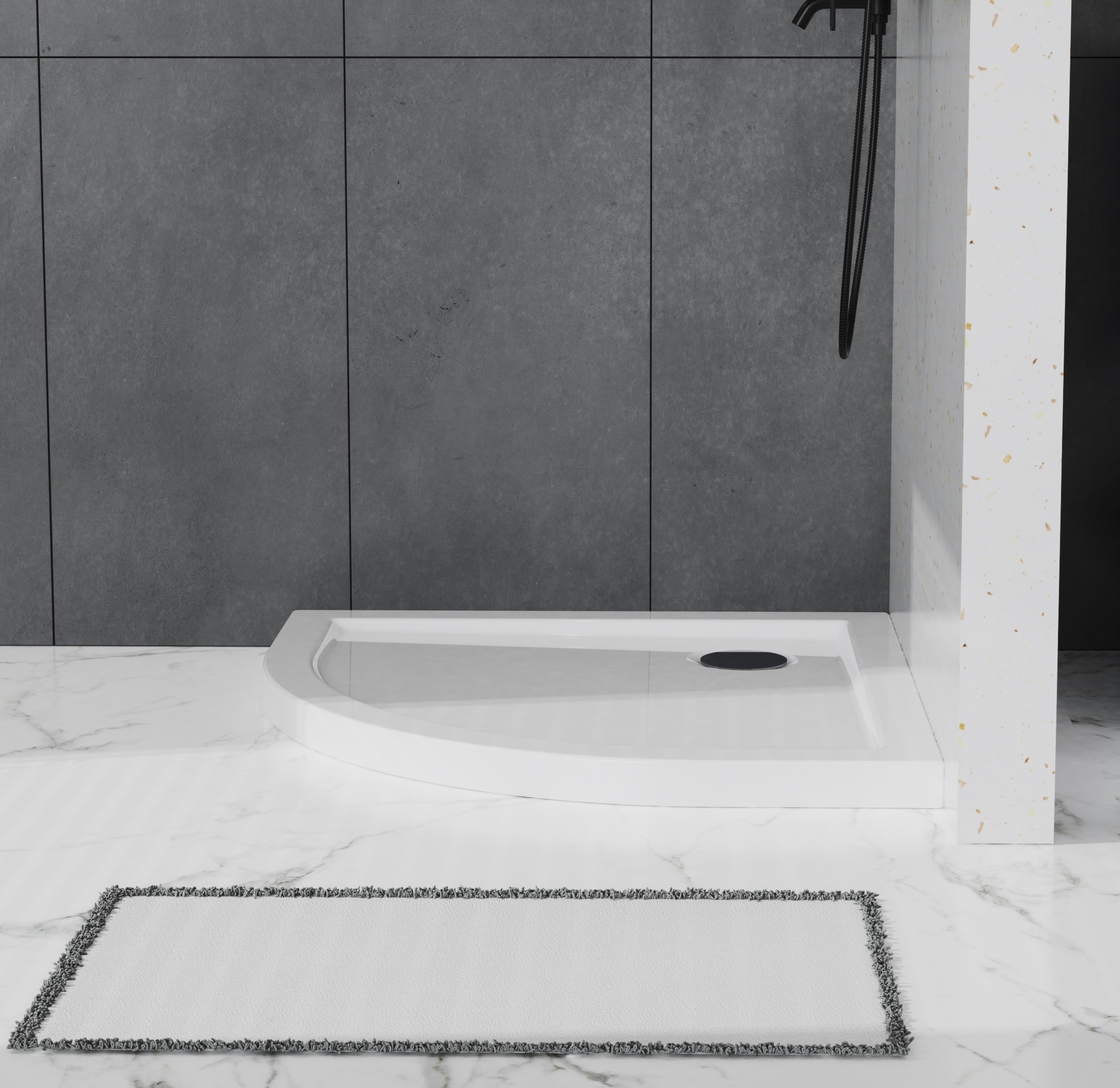 Душевой поддон изготовлен из высококачественного акрила, усиленного фиберглассом.