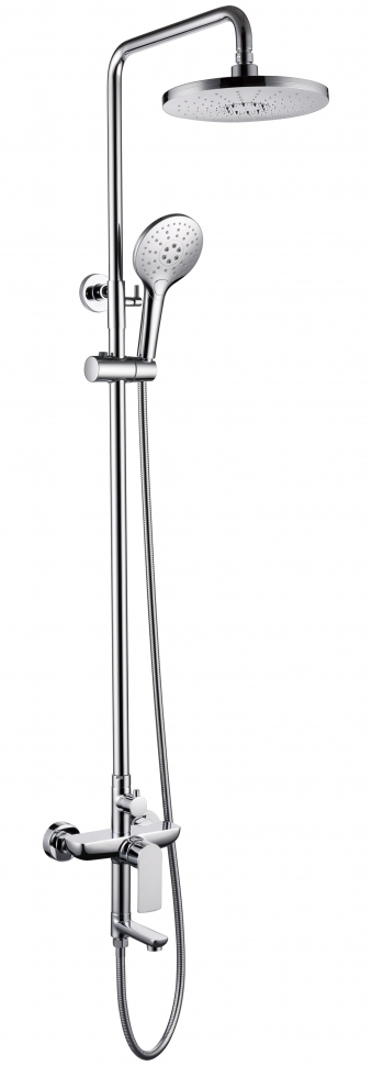 Лейка, верхний душ, штанга, шланг, прокладки, эксцентрики, отражатели, монтажный комплект.