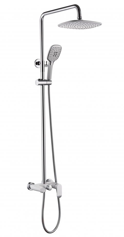 Лейка, верхний душ, штанга, шланг, прокладки, эксцентрики, отражатели, монтажный комплект.