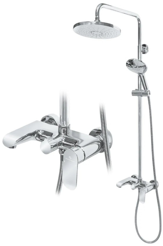 Лейка, верхний душ, штанга, шланг, прокладки, эксцентрики, отражатели, монтажный комплект.