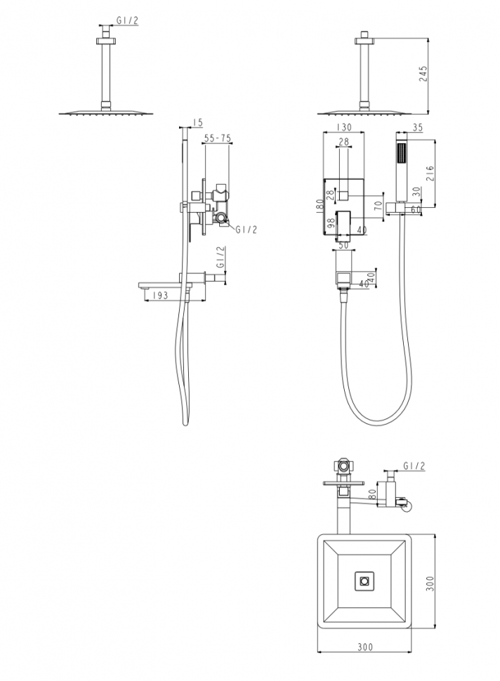 Душевая система скрытого монтажа Grocenberg GB5089BL-2 Чёрный матовый