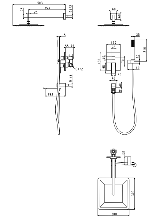Душевая система скрытого монтажа Grocenberg GB5089GO-1 Золото