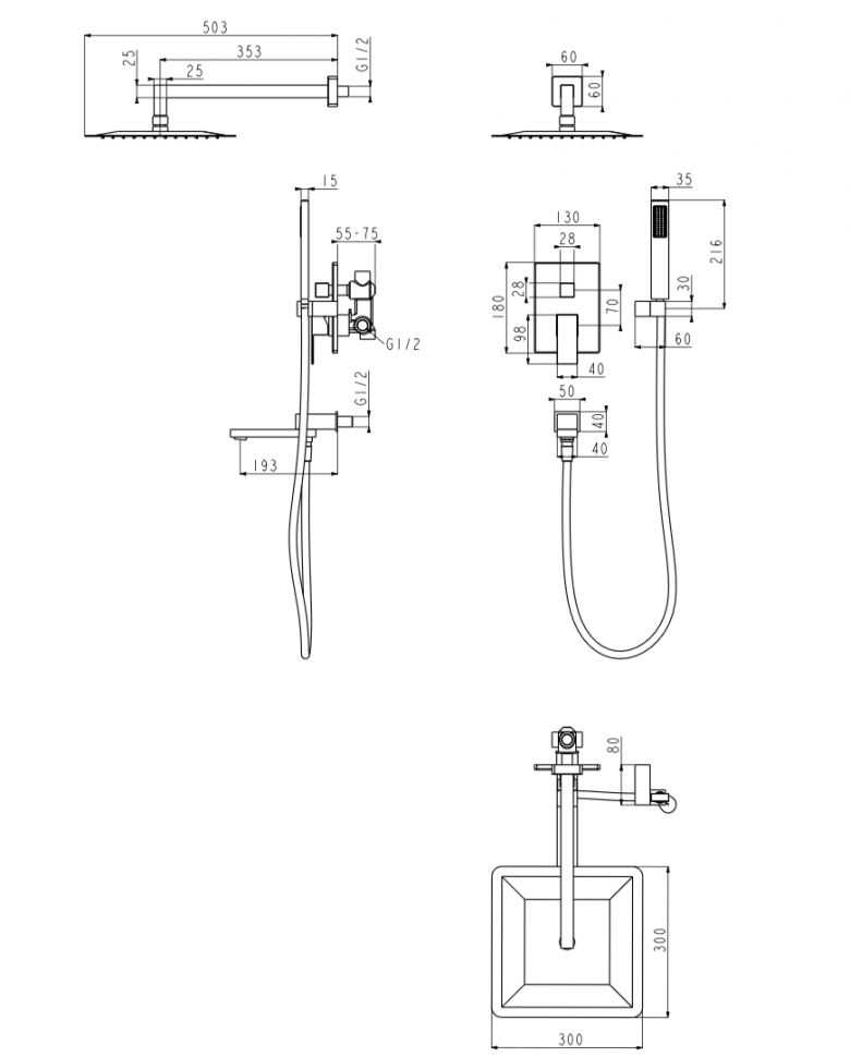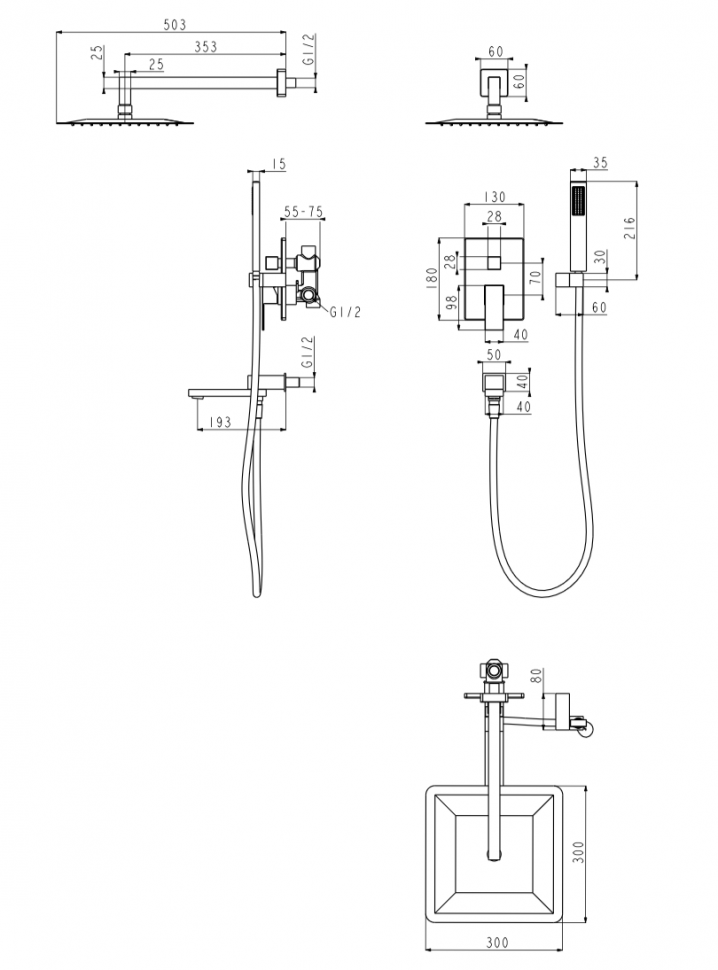 Душевая система скрытого монтажа Grocenberg GB5089NK-1 Никель