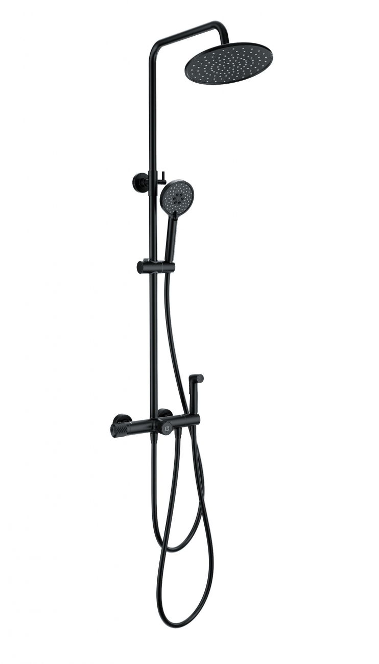 Душевая система с техническим душем и термостатом WONZON & WOGHAND, Черный матовый (WW-B3097-A-MB)