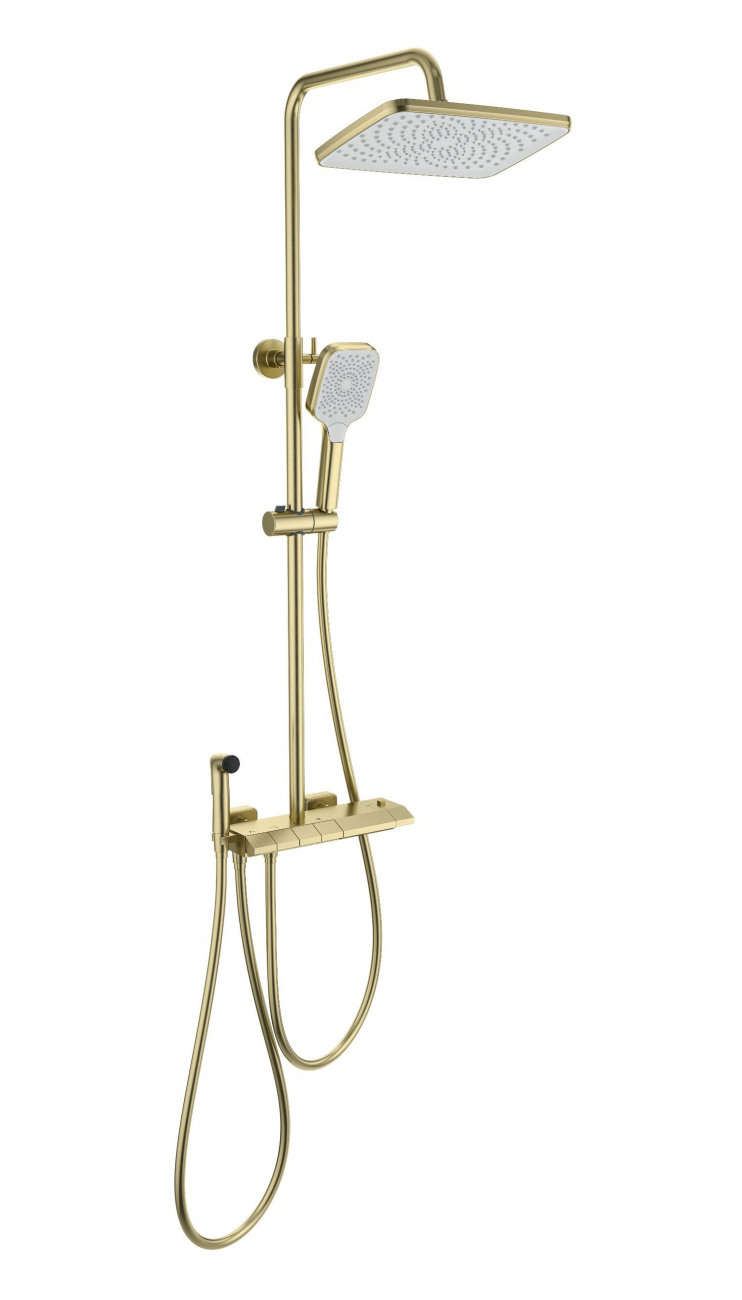Душевая система с техническим душем и термостатом WONZON & WOGHAND MUSE Piano, Брашированное золото (WW-B4132-A-BG)