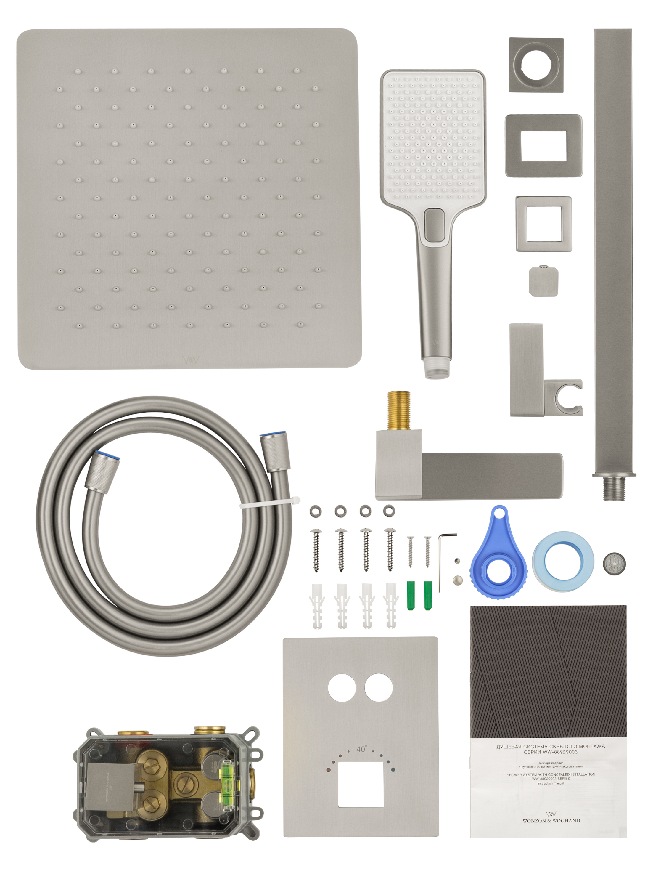 Душевая система с термостатом встраиваемая WONZON & WOGHAND, Брашированный никель (WW-88929003-BN)