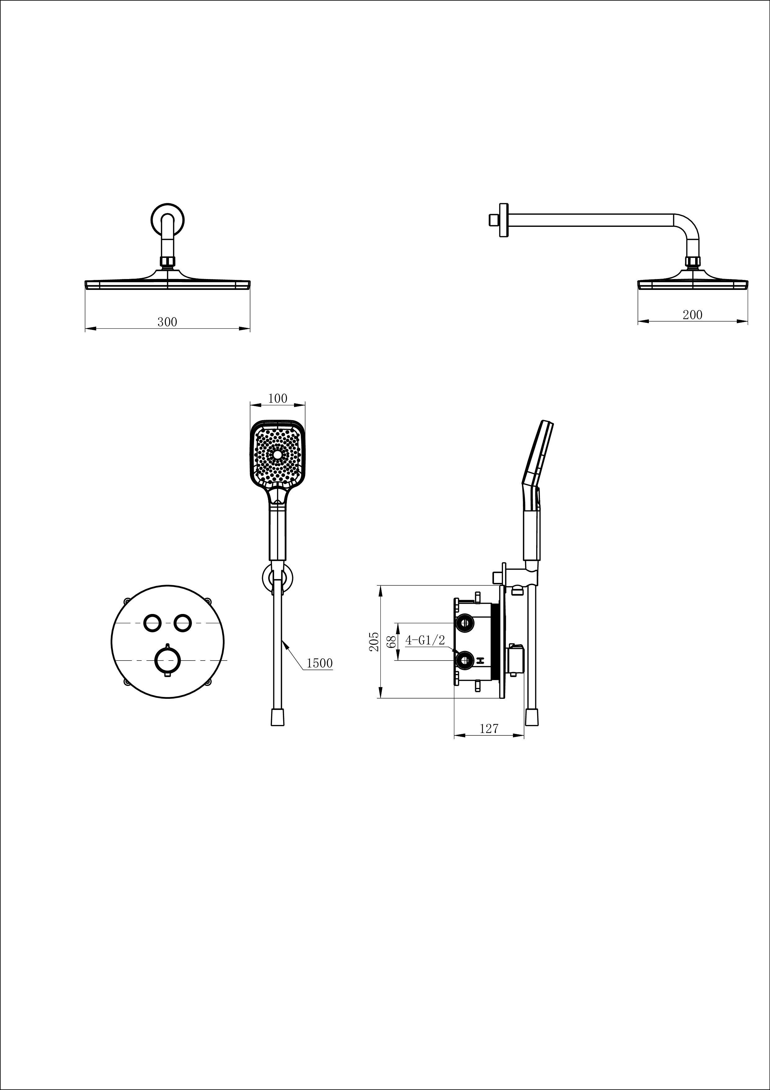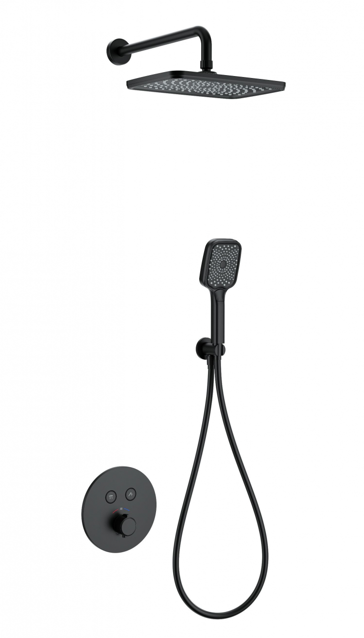 Душевая система с термостатом встраиваемая WONZON & WOGHAND, Черный матовый (WW-D2017-A-MB)