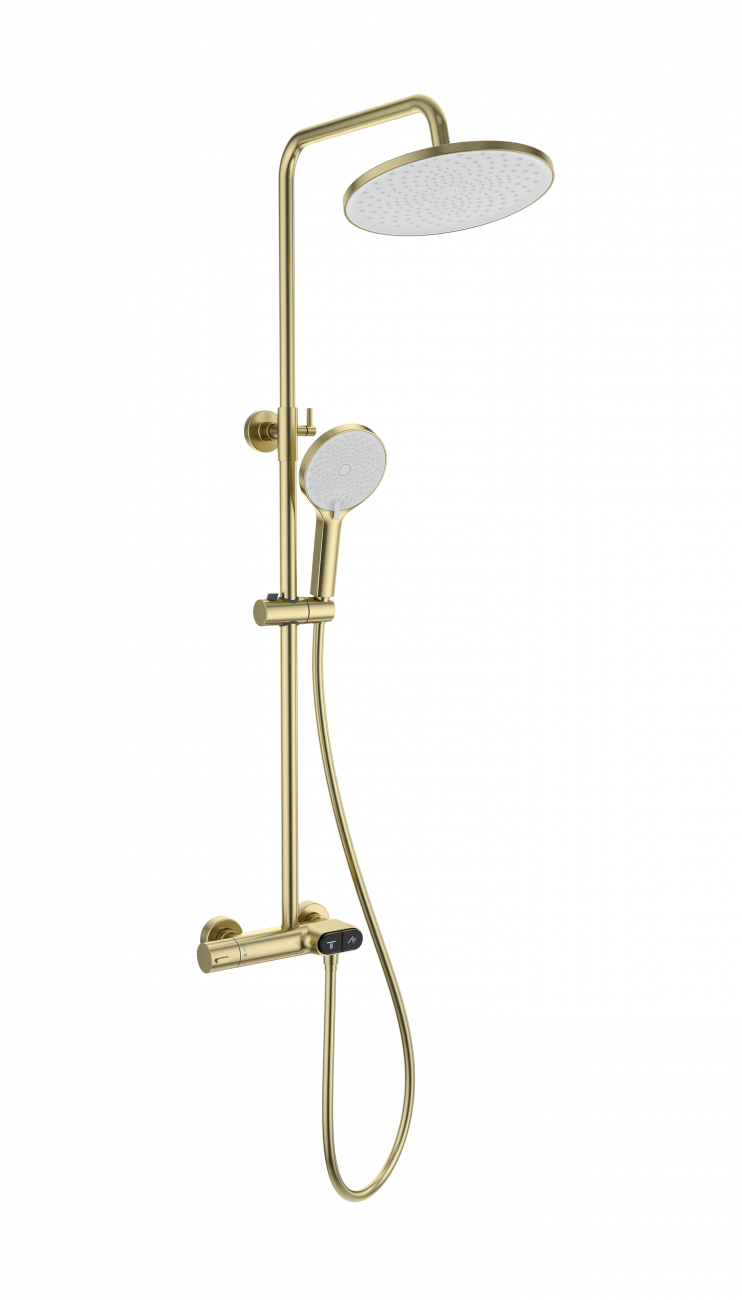 Душевая система с термостатом WONZON & WOGHAND MUSE Corno, Брашированное золото (WW-B2091-A-BG)