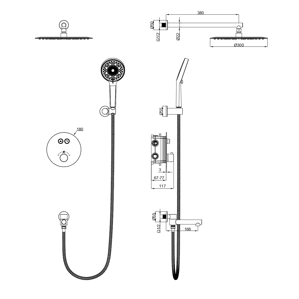 Душевая система с термостатом WONZON & WOGHAND STICK, Розовое золото (WW-88929010-RG)