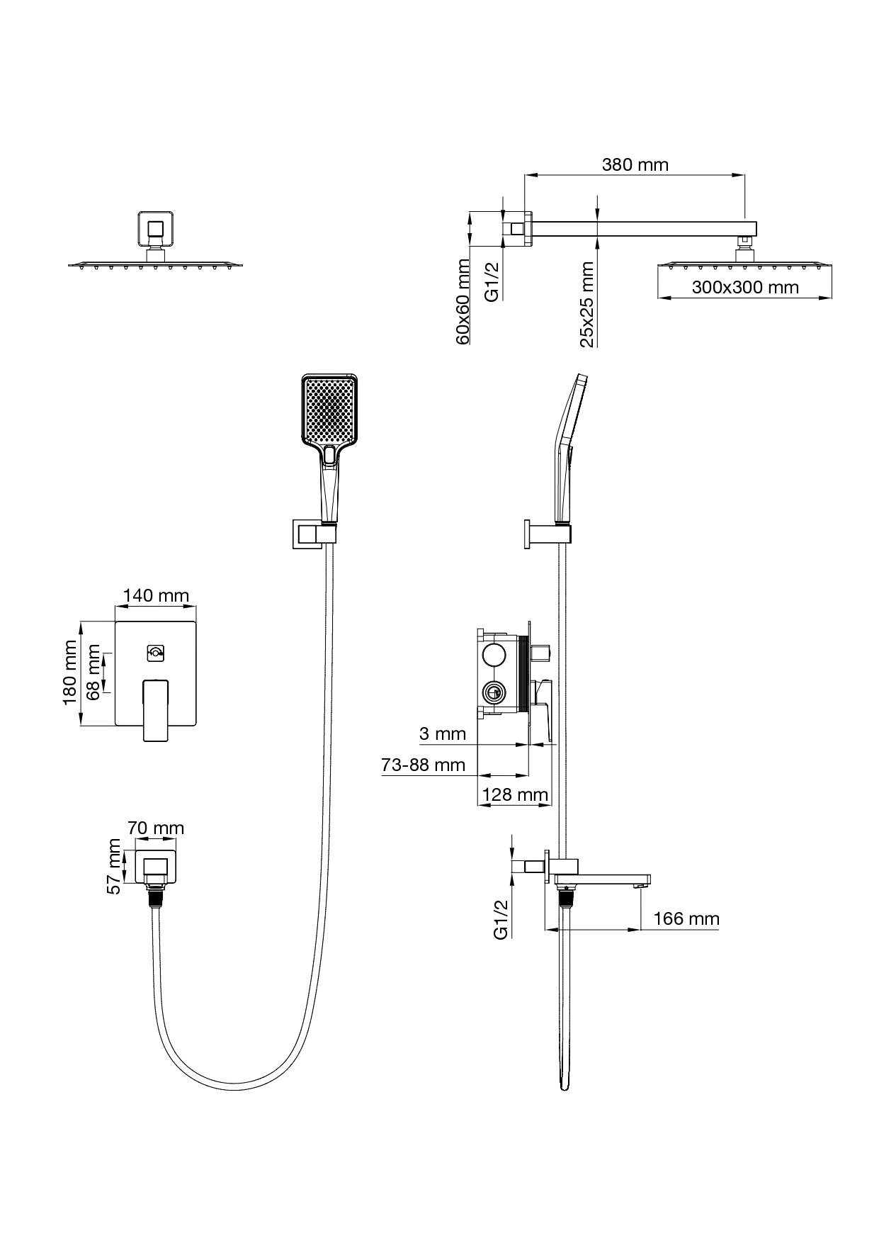 Душевая система встраиваемая WONZON & WOGHAND CUBE 2.0, Брашированное золото (WW-88087068-BG)