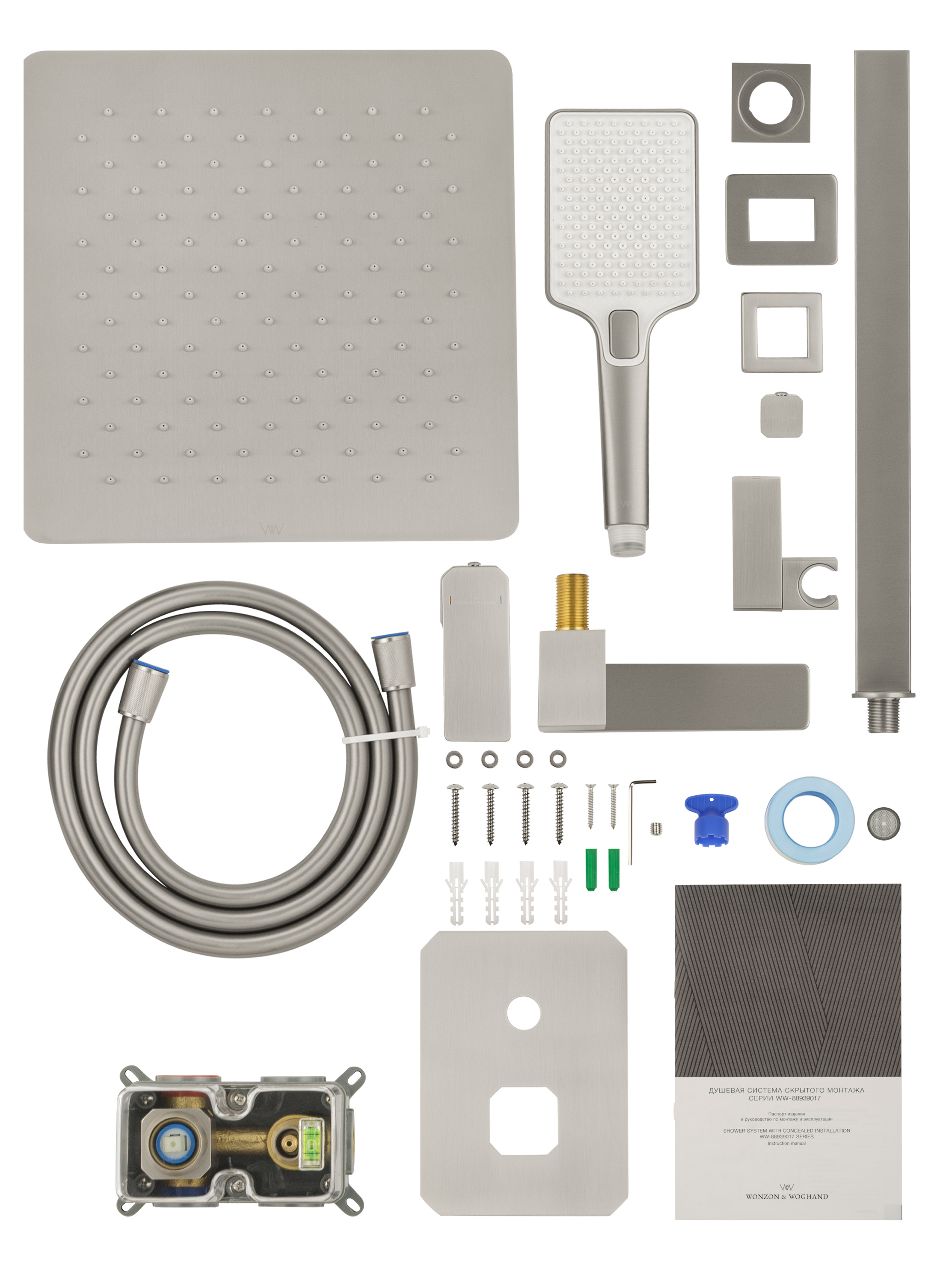 Душевая система встраиваемая WONZON & WOGHAND STICK, Брашированный никель (WW-88939017-BN)