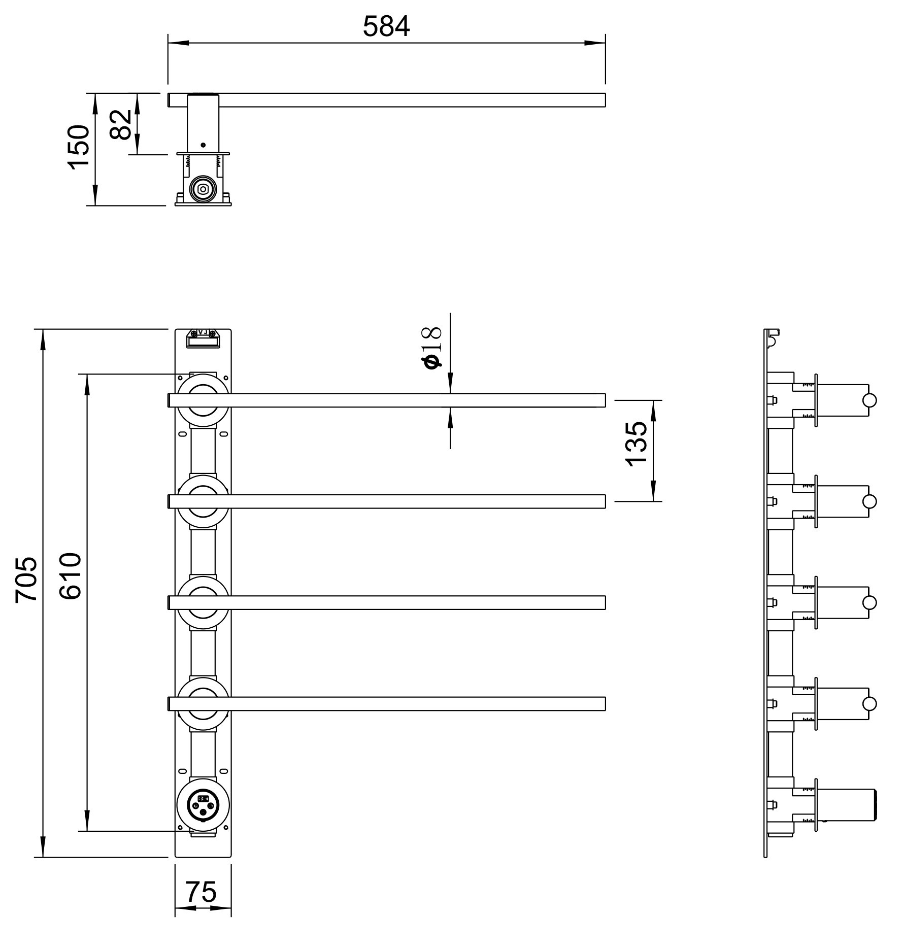 Полотенцесушитель электрический встраиваемый WONZON & WOGHAND DORTMUND, Брашированное золото (WW-A364-BG)