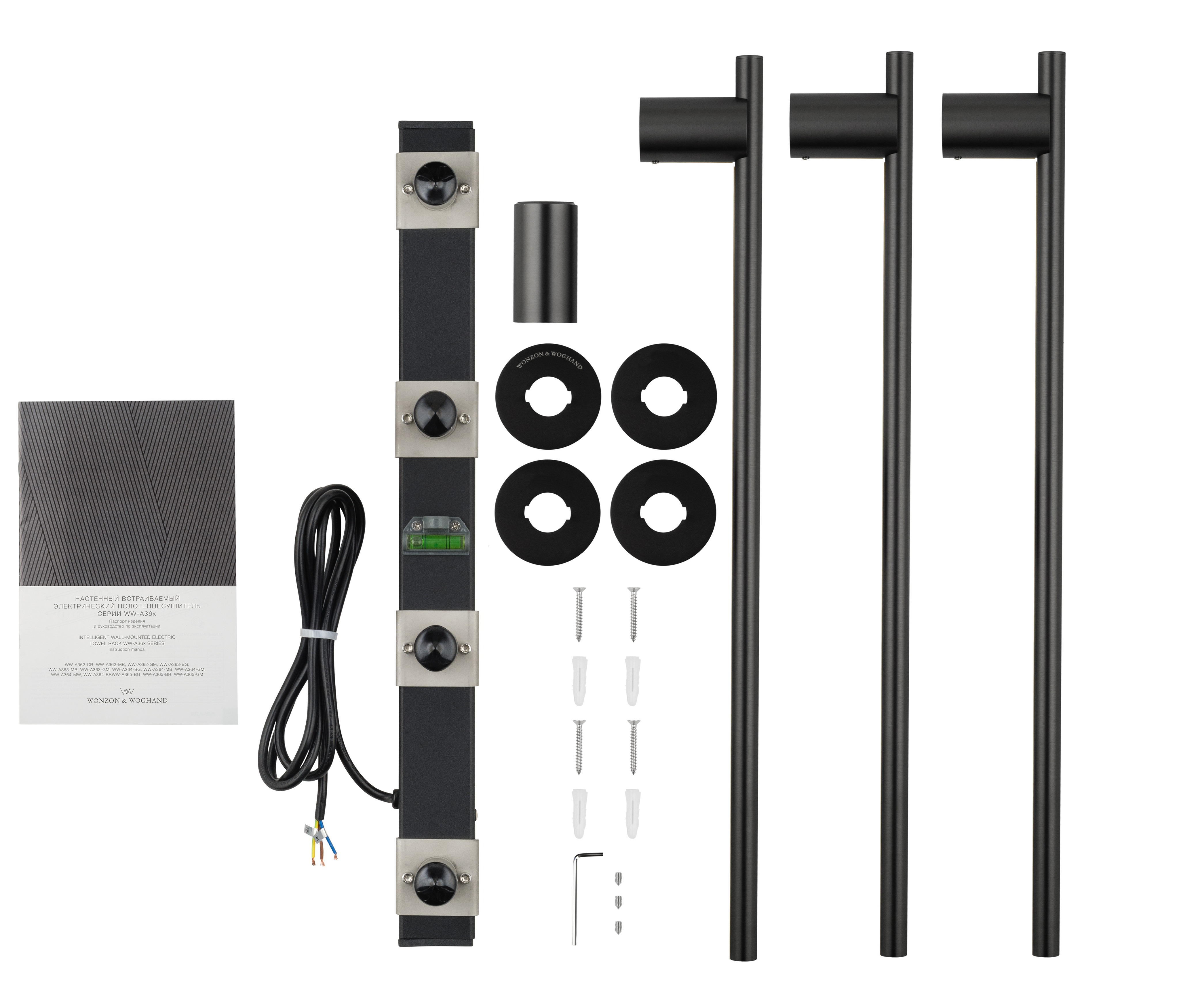 Полотенцесушитель электрический встраиваемый WONZON & WOGHAND DORTMUND, Черный матовый (WW-A363-MB)