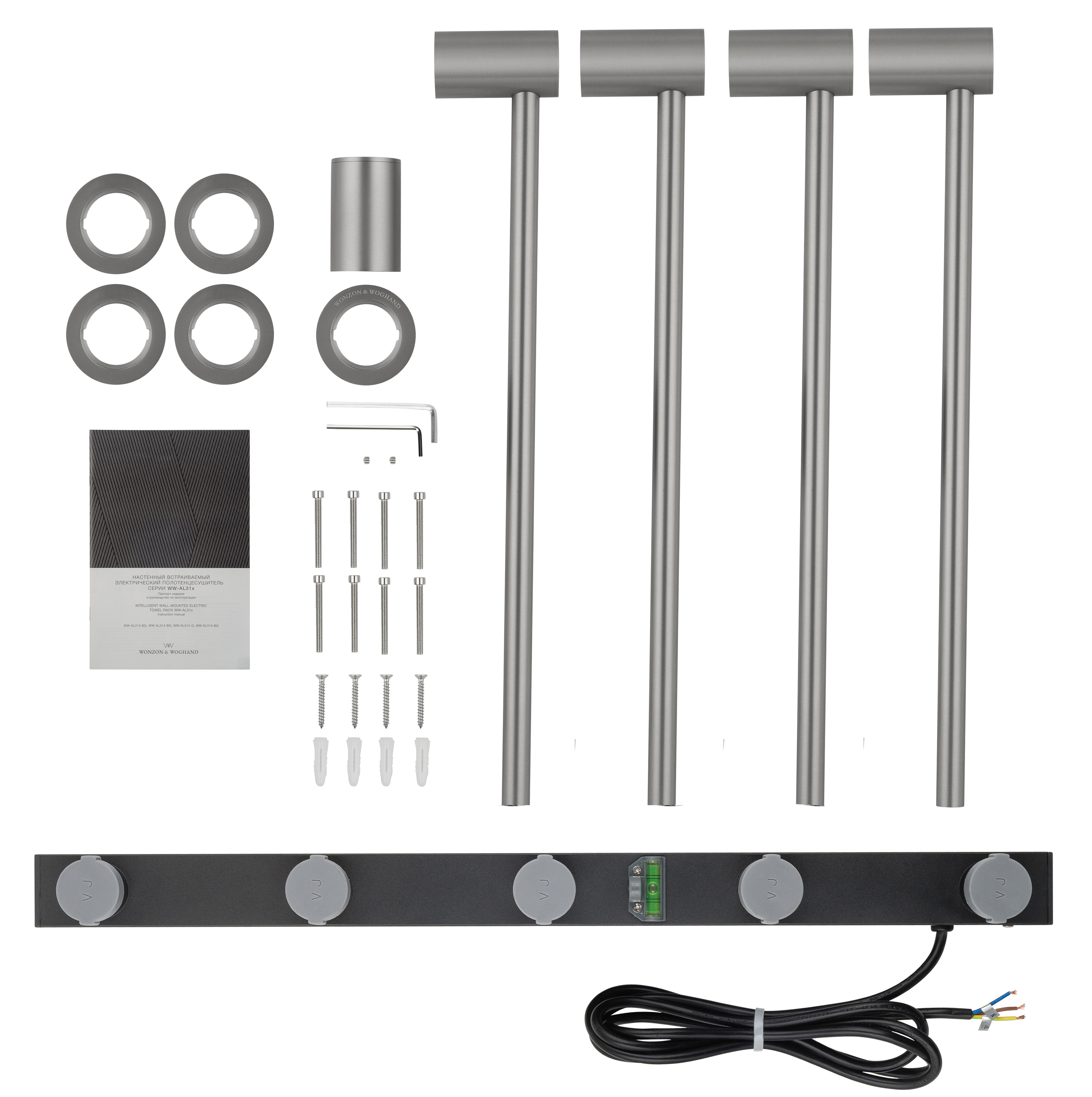 Полотенцесушитель электрический встраиваемый WONZON & WOGHAND HAMBURG, Брашированный никель (WW-AL314-BR)