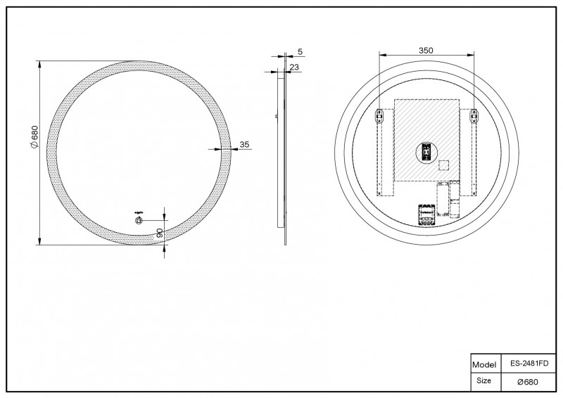 Зеркало со встроенной подсветкой - подогрев полотна 15Вт (система антизапотевания)