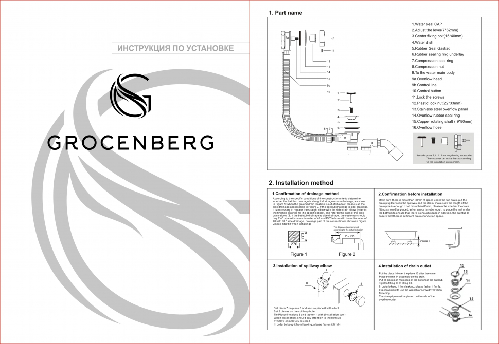 Полуавтоматический сливы-перелив для ванны Grocenberg GB240NK Никель