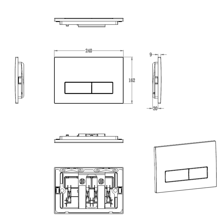 Кнопка смыва для инсталляции механическая WONZON & WOGHAND, Темный графит (WW-IB224-BGM)