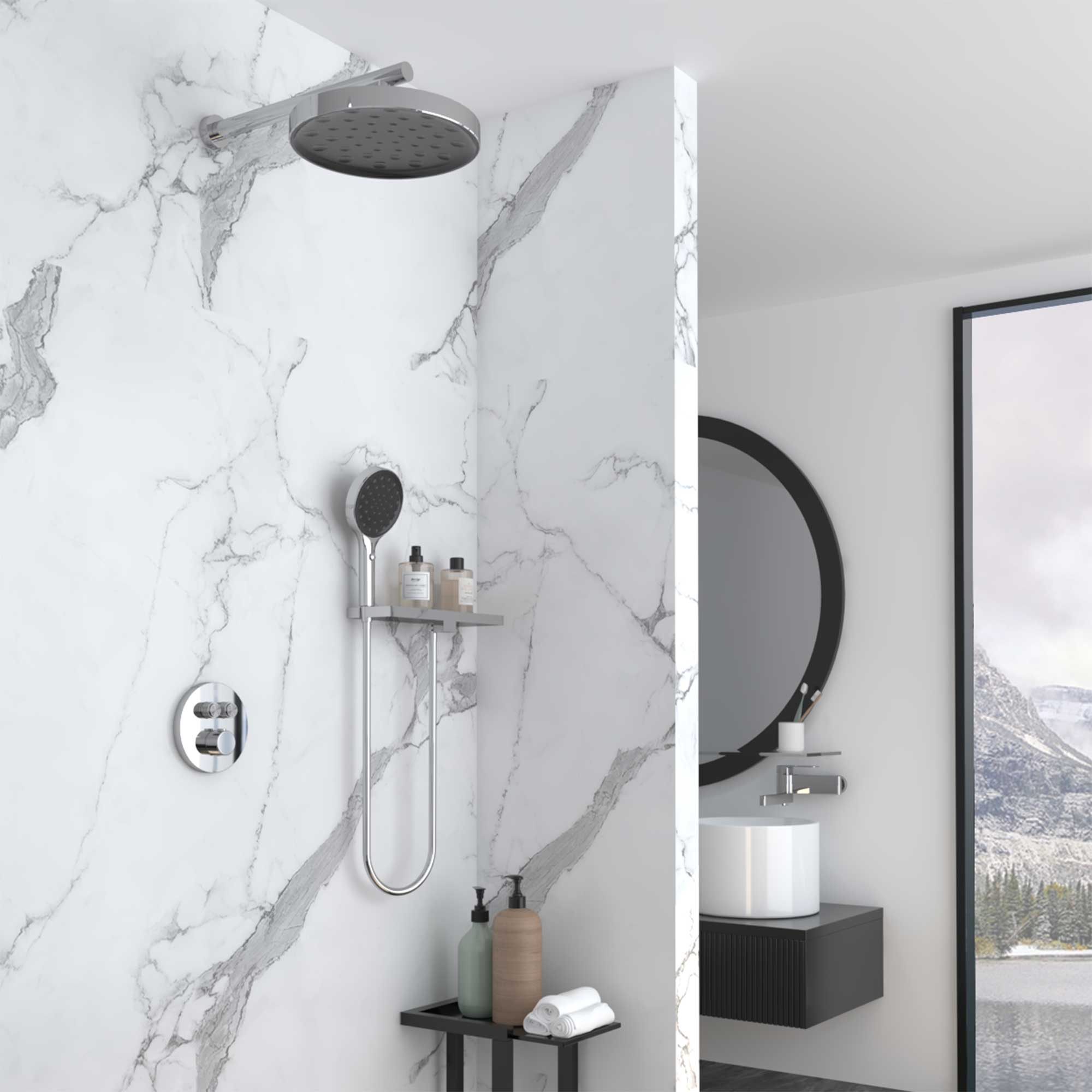 Полка с подводкой воды и держателем ручного душа из нержавеющей стали