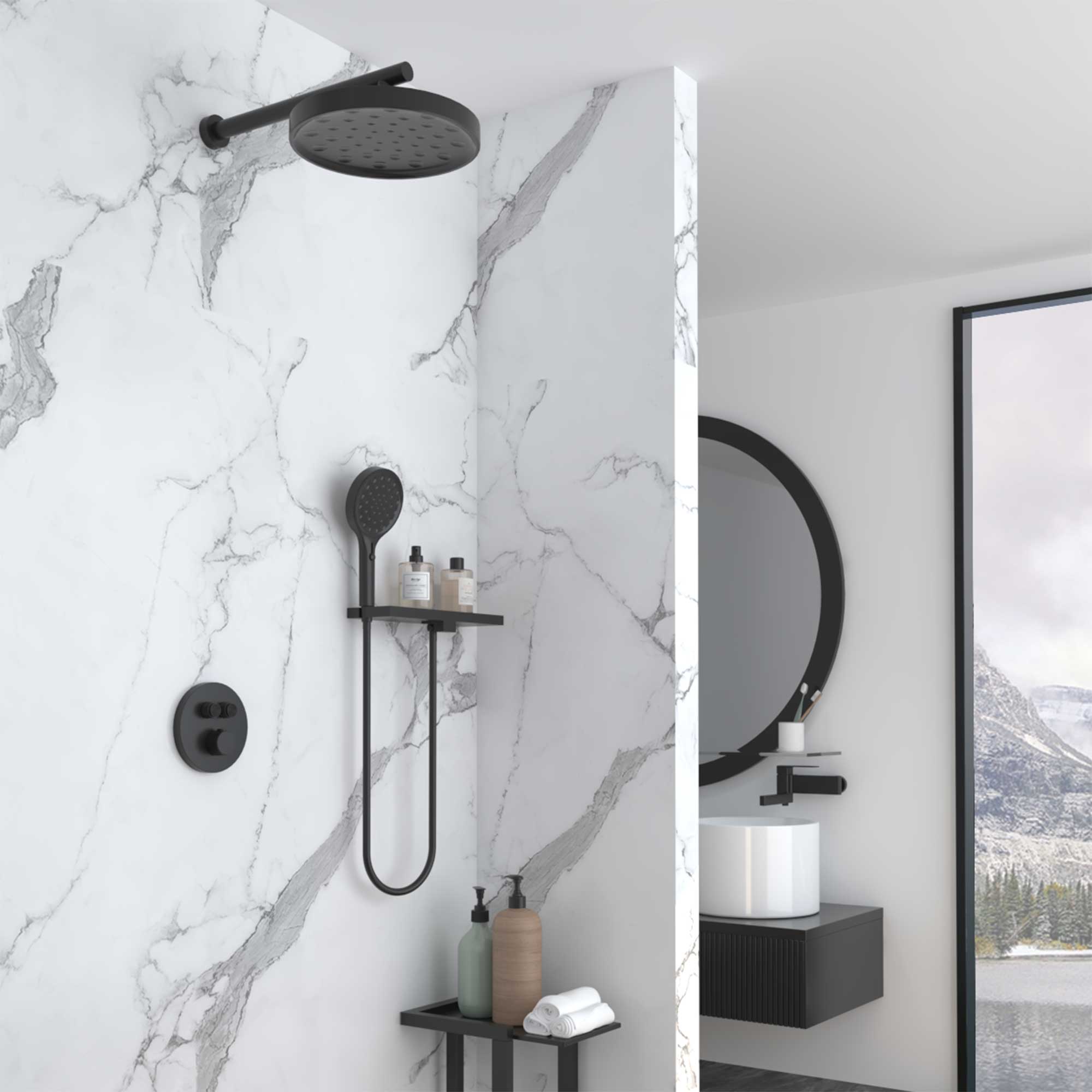 Полка с подводкой воды и держателем ручного душа из нержавеющей стали