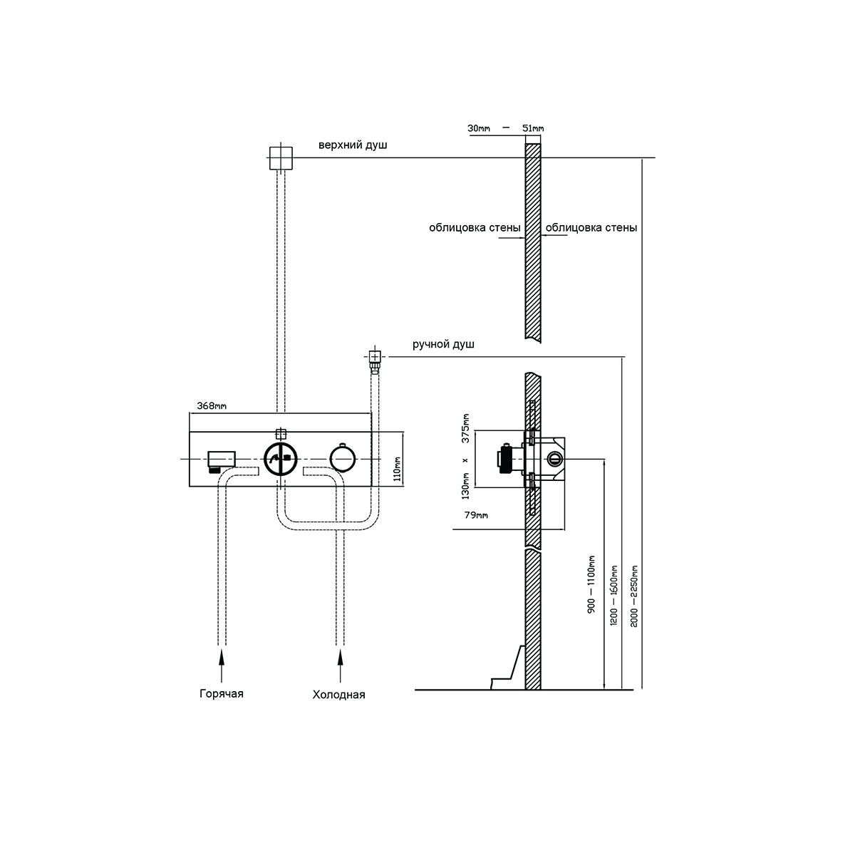 Верхний душ, ручной душ, смеситель со встраиваемой частью