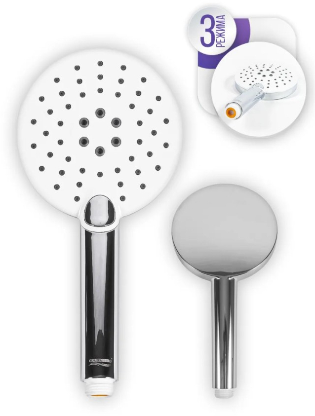 Лейка душевая (3 режима) Grocenberg GB33201 Белый хром