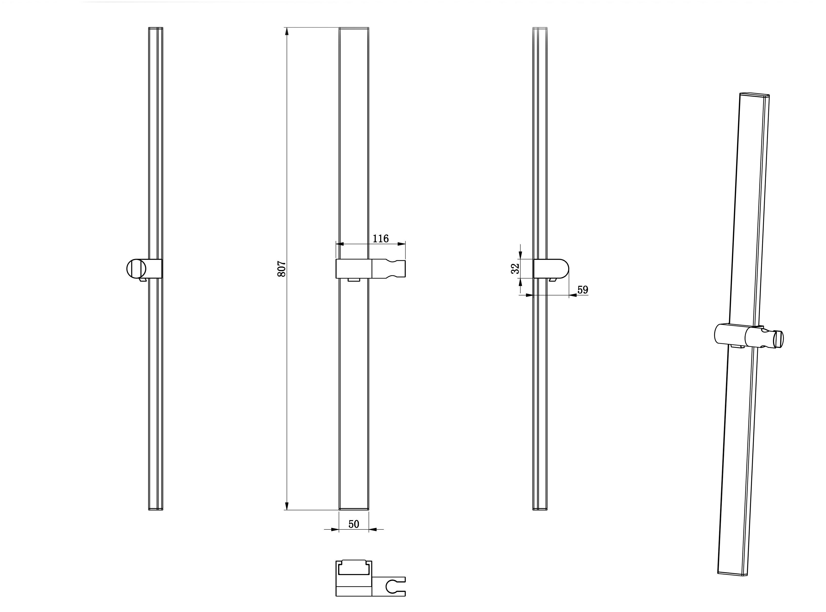 Душевая штанга WONZON & WOGHAND, Черный матовый (WW-986210-MB)